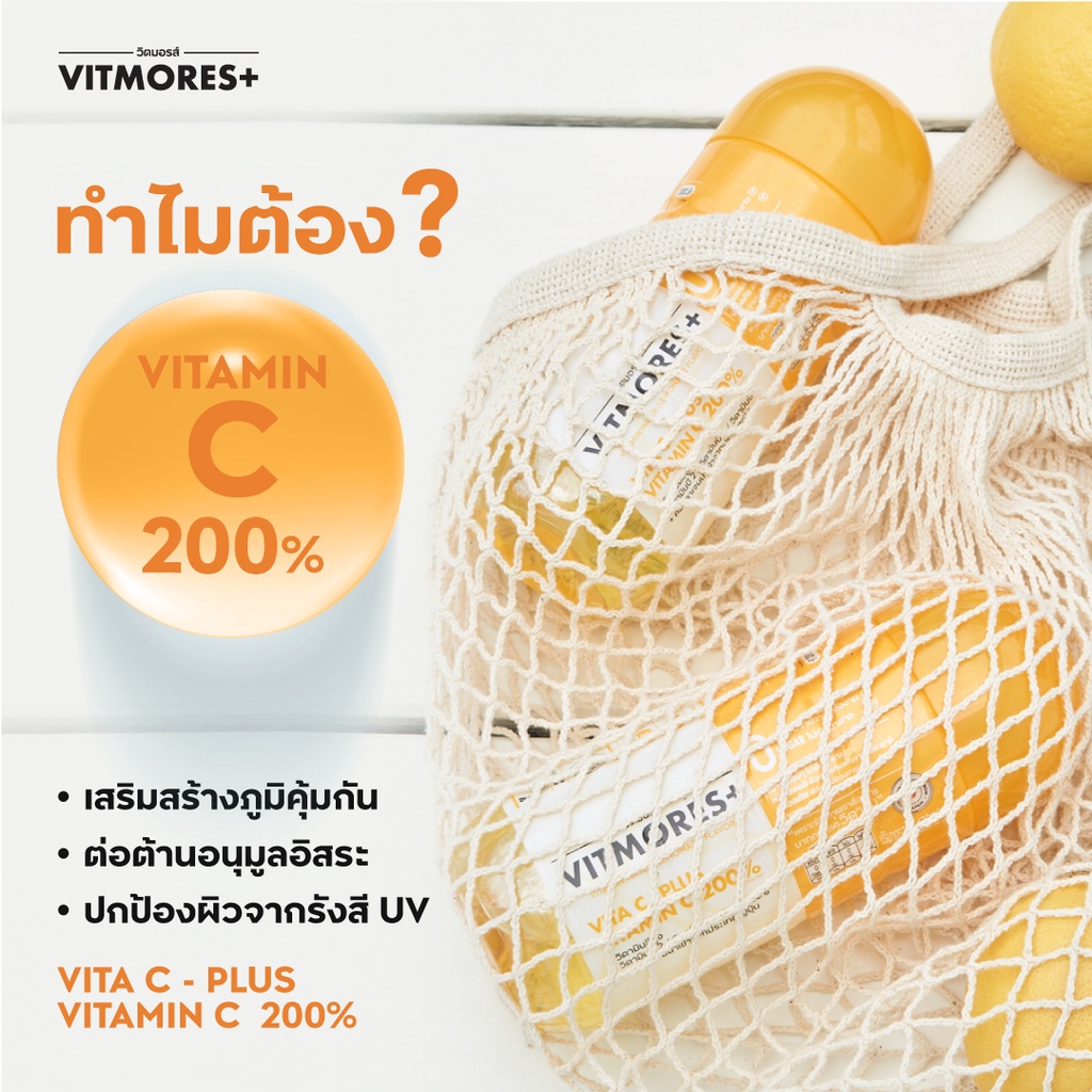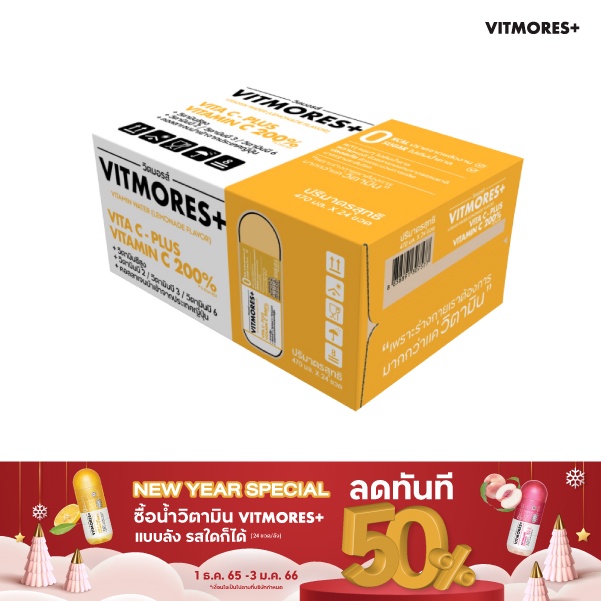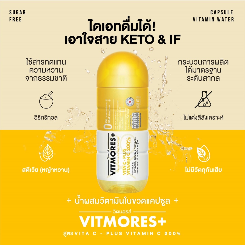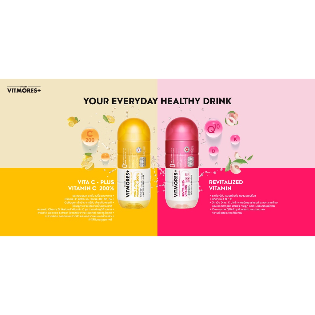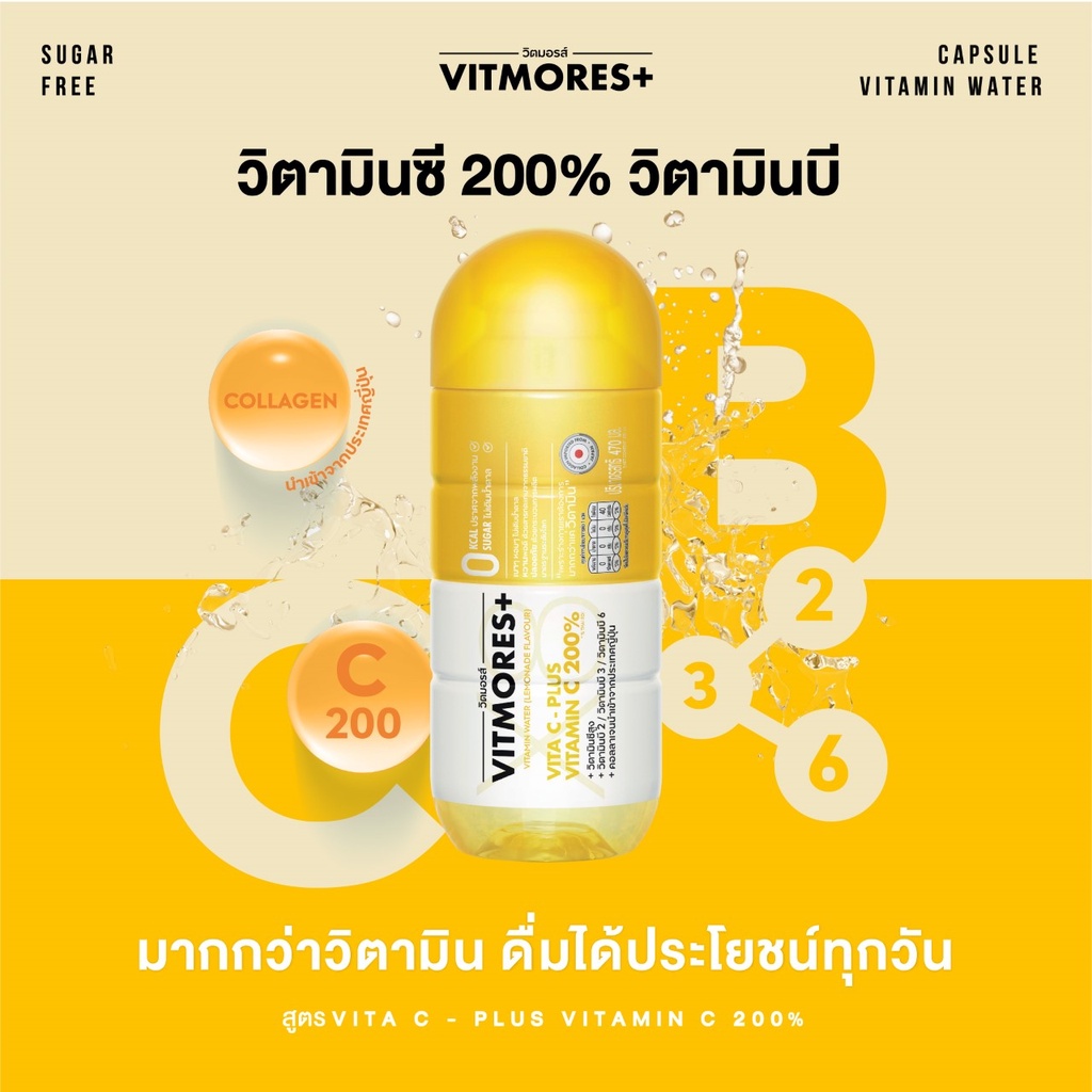 VITMORES+ VITA C - PLUS VITAMIN C 200% 470ml. / วิตมอรส์ น้ำผสมวิตามิน รสเลมอน 470 มล. ( 1 ลัง 24 ขวด )