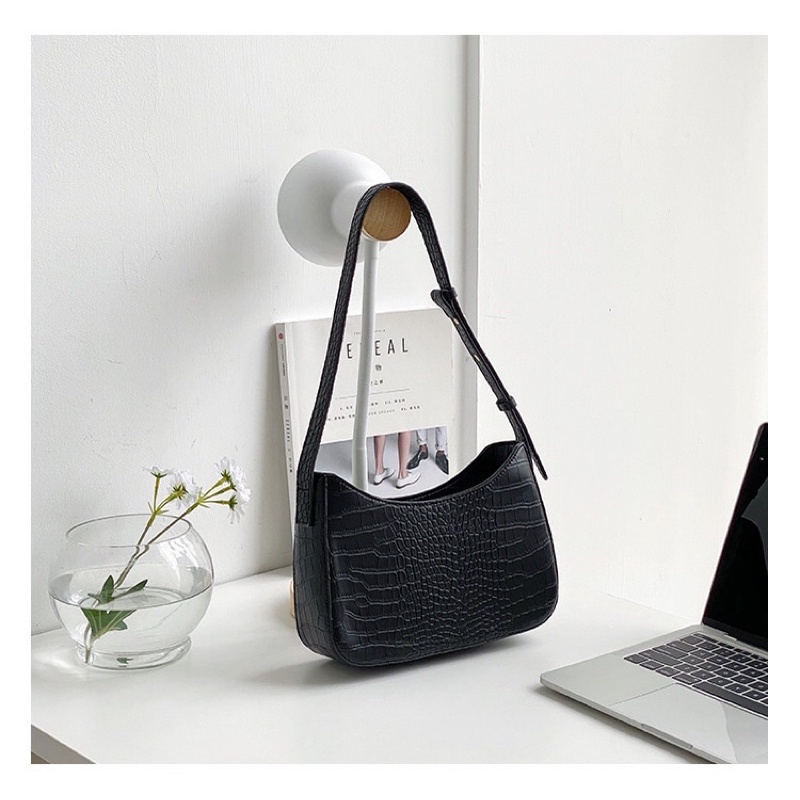 💕พร้อมส่ง กระเป๋าสะพาย ทรงสวย ลายหนังเรียบ ลายหนังจรเข้ #AB901