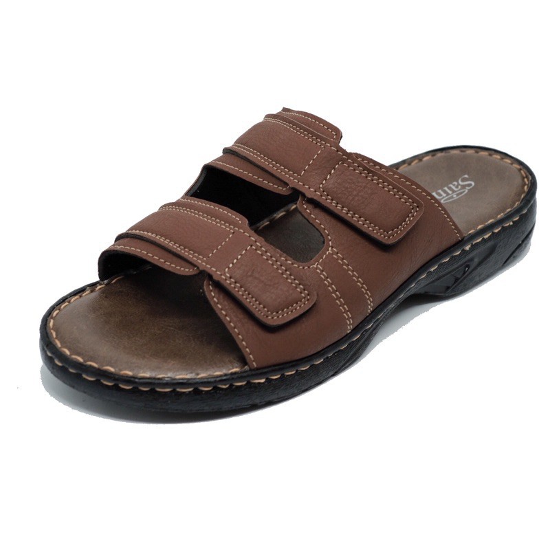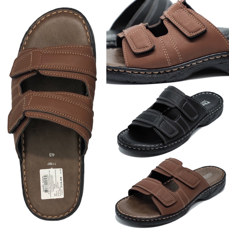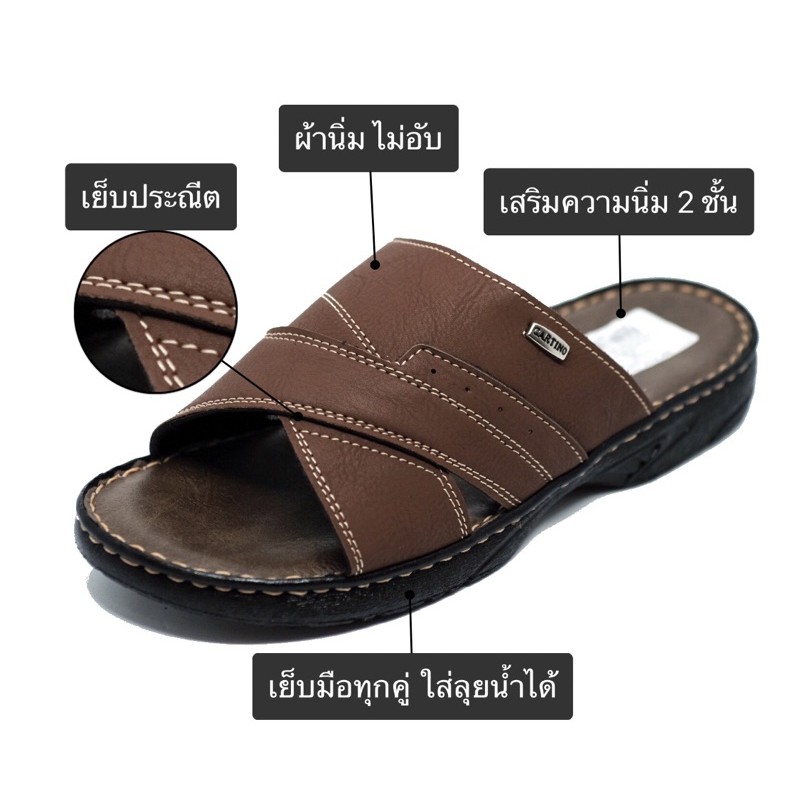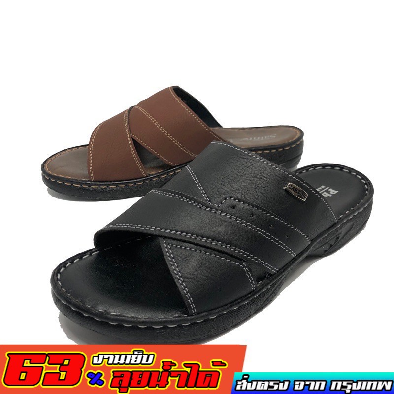 รองเท้าแตะผู้ชาย❤️ รองเท้าแตะชาย แบบสวม หนัง ผ้านิ่ม พื้นนุ่ม ไม่อับ เย็บรอบกันกาวหลุด ทนต่อการใช้ง าน