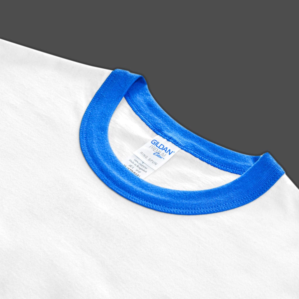 GILDAN® เสื้อยืดกุ๊นคอกุ๊นแขน - ตัวขาว แขนน้ำเงิน