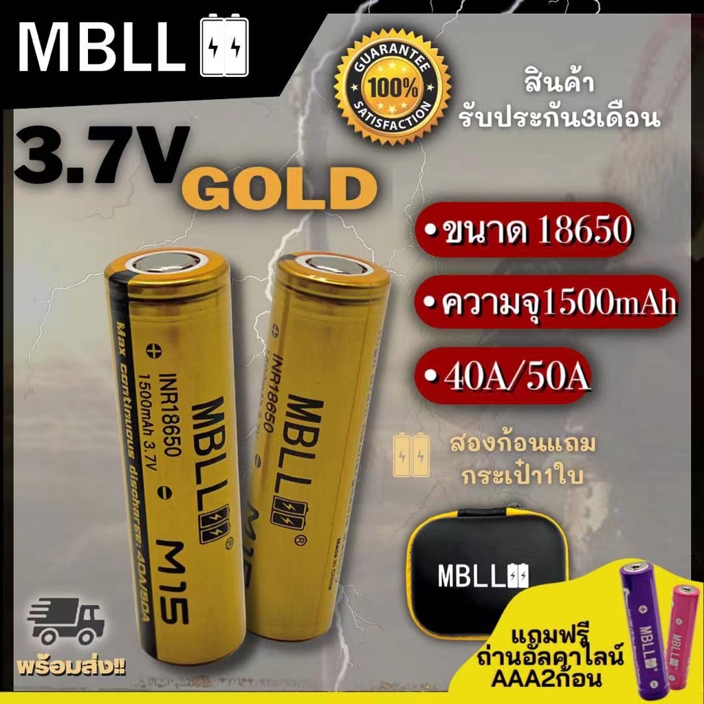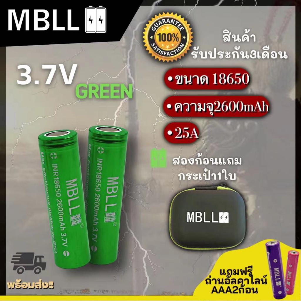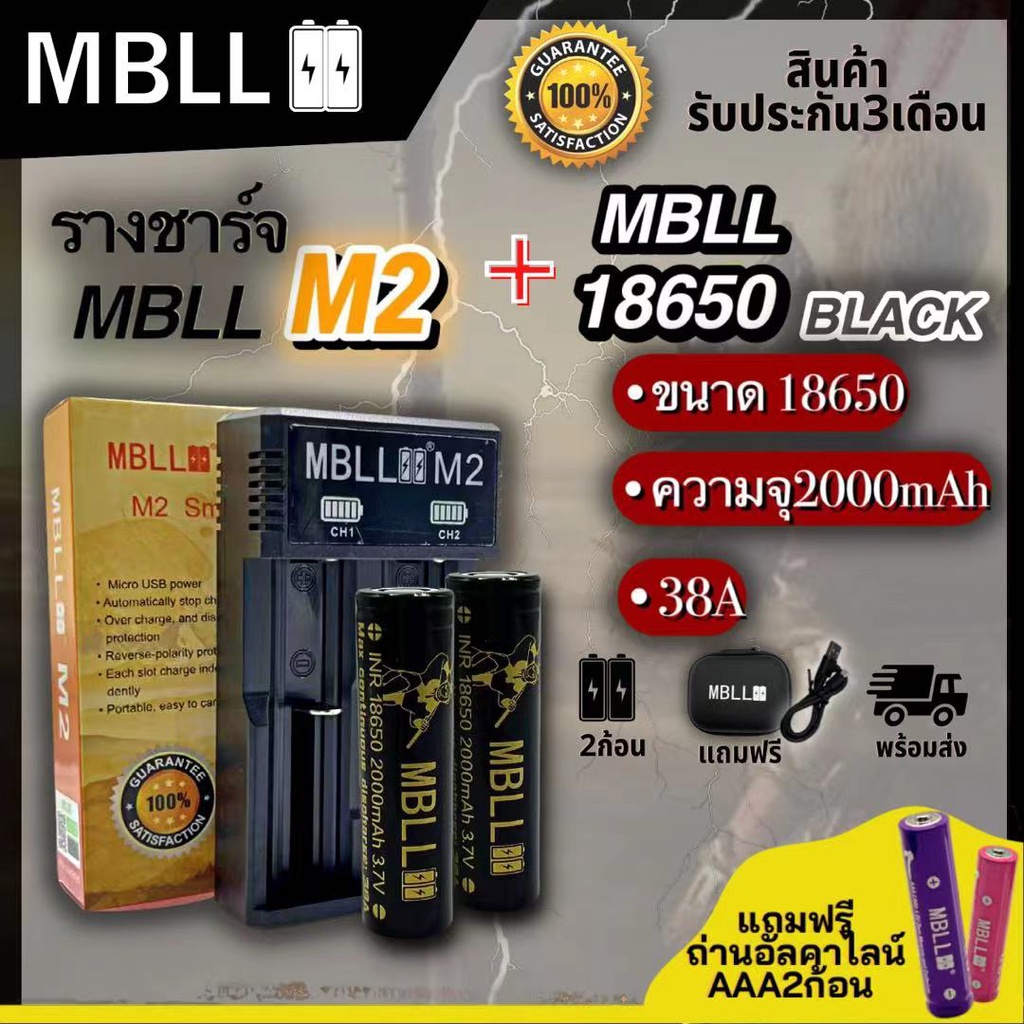 แท้100% ถ่านชาร์จ MBLL 18650 3.7V+เครื่องชาร์จ 2ช่อง MBLL M2 ของดีราคาถูกเราก็มี 2ก้อนแถมฟรีกระเป๋า รับประกัน1ปี