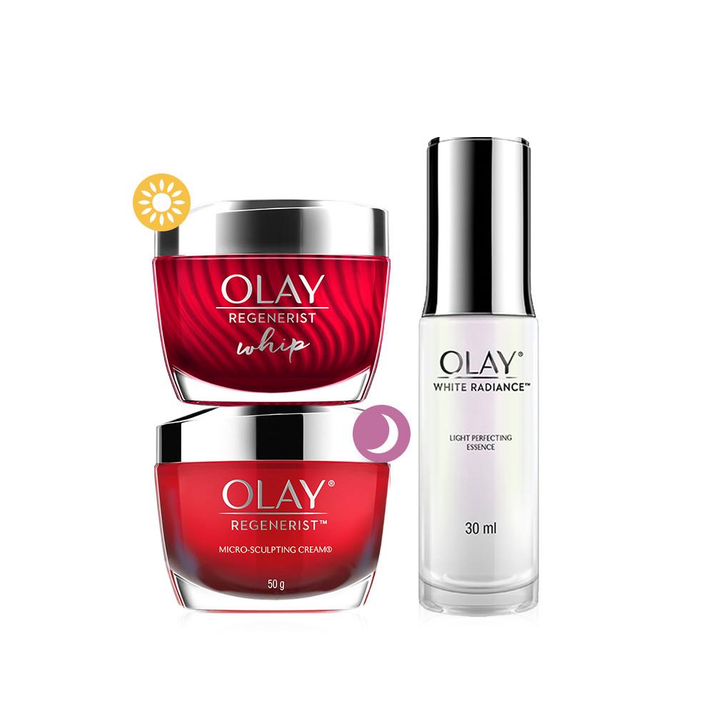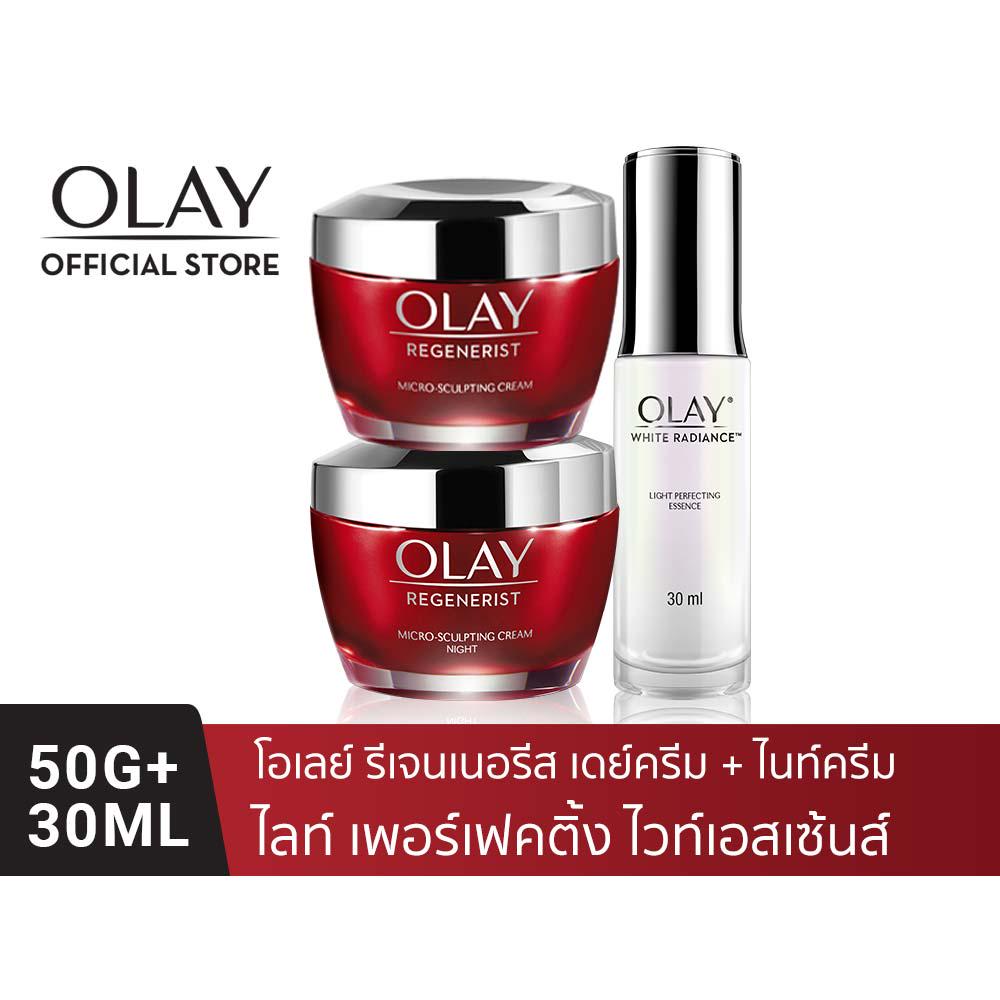 OLAY โอเลย์ Regenerist Micro-Scuplting เดย์ครีม 50g + ไนท์ครีม 50g + Luminous Essence เซรั่ม 30ml