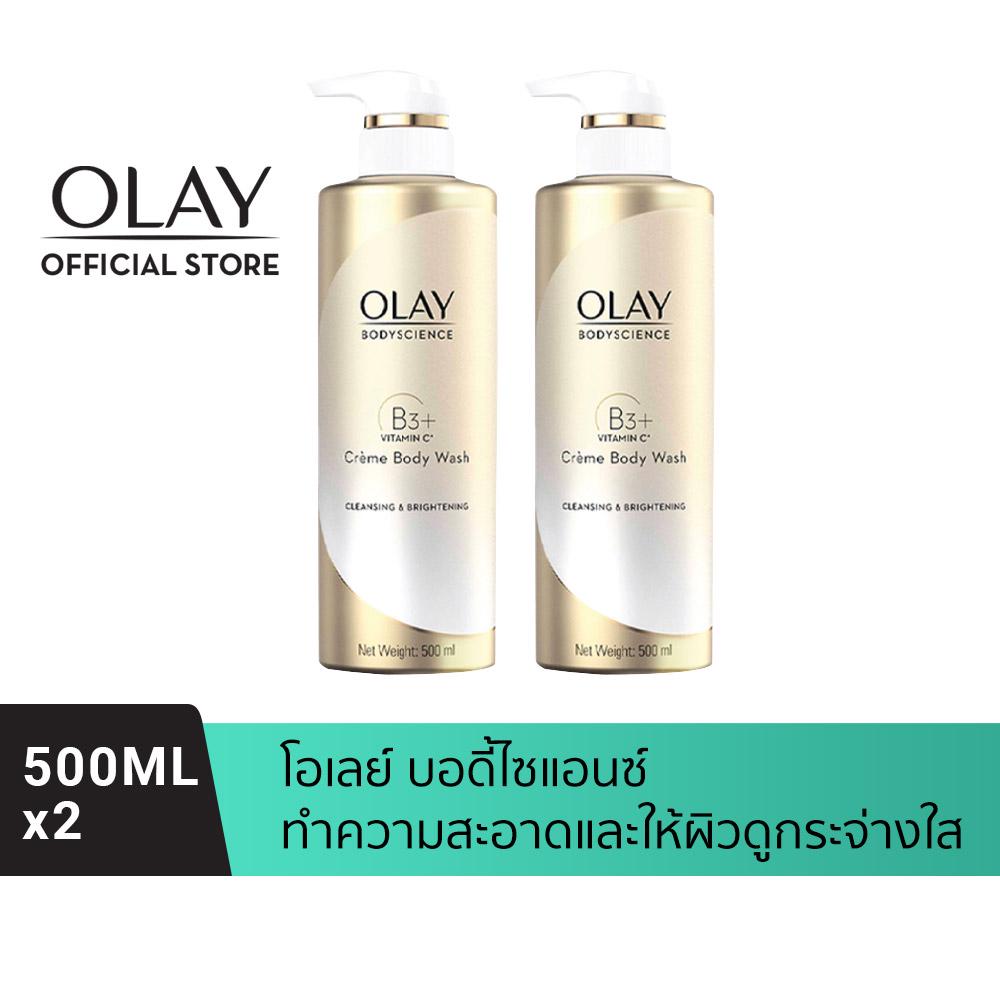 [แพคคู่] OLAY โอเลย์ BodyScience Brightening Creme Body Wash ครีมอาบน้ำสูตรผิวกระจ่างใส 500ml x2 ขวด