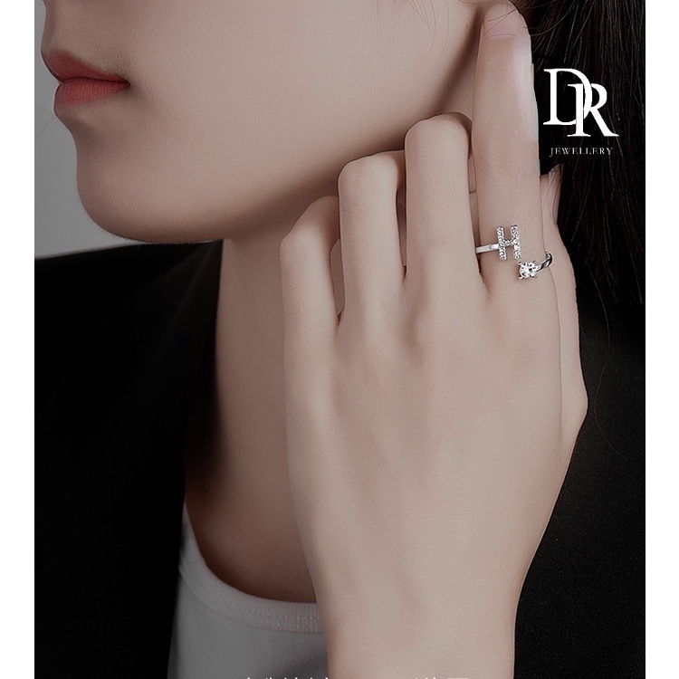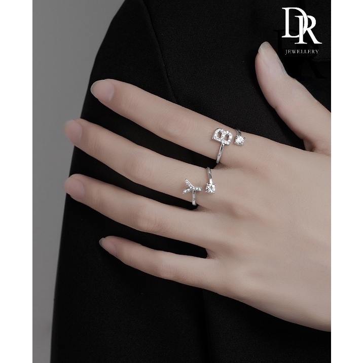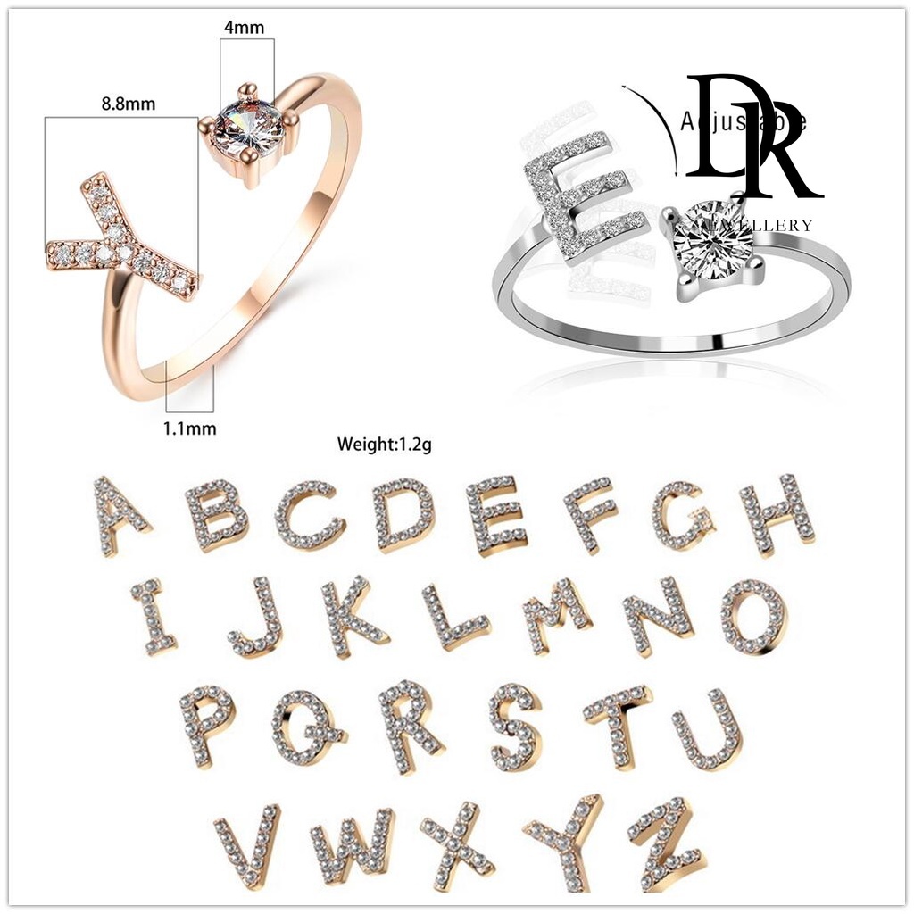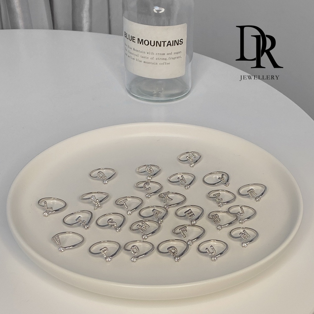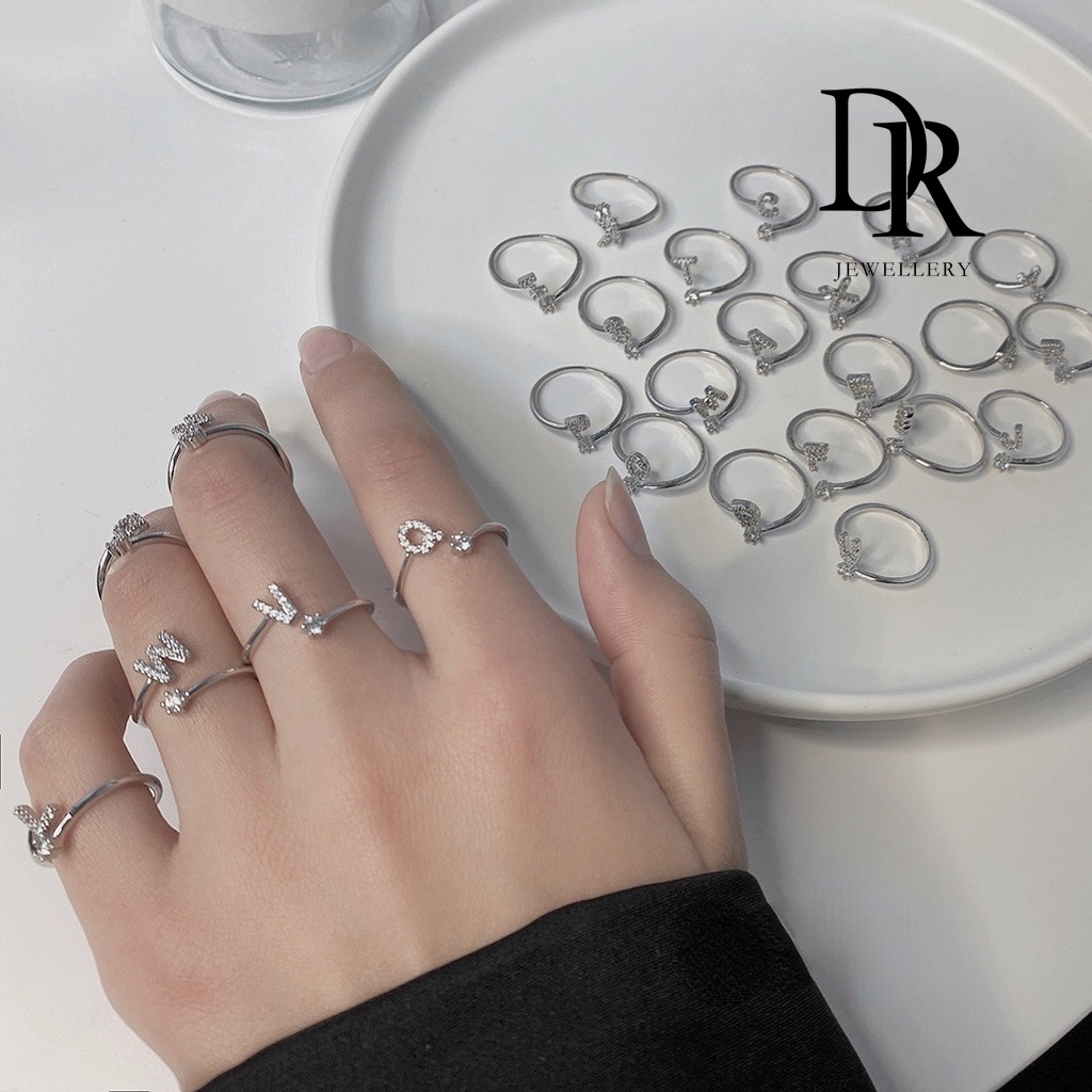 Dr เครื่องประดับ แหวนสเตนเลส ชุบเงิน 26 ตัวอักษร ปรับได้ สไตล์เกาหลี แฟชั่นสําหรับผู้หญิง