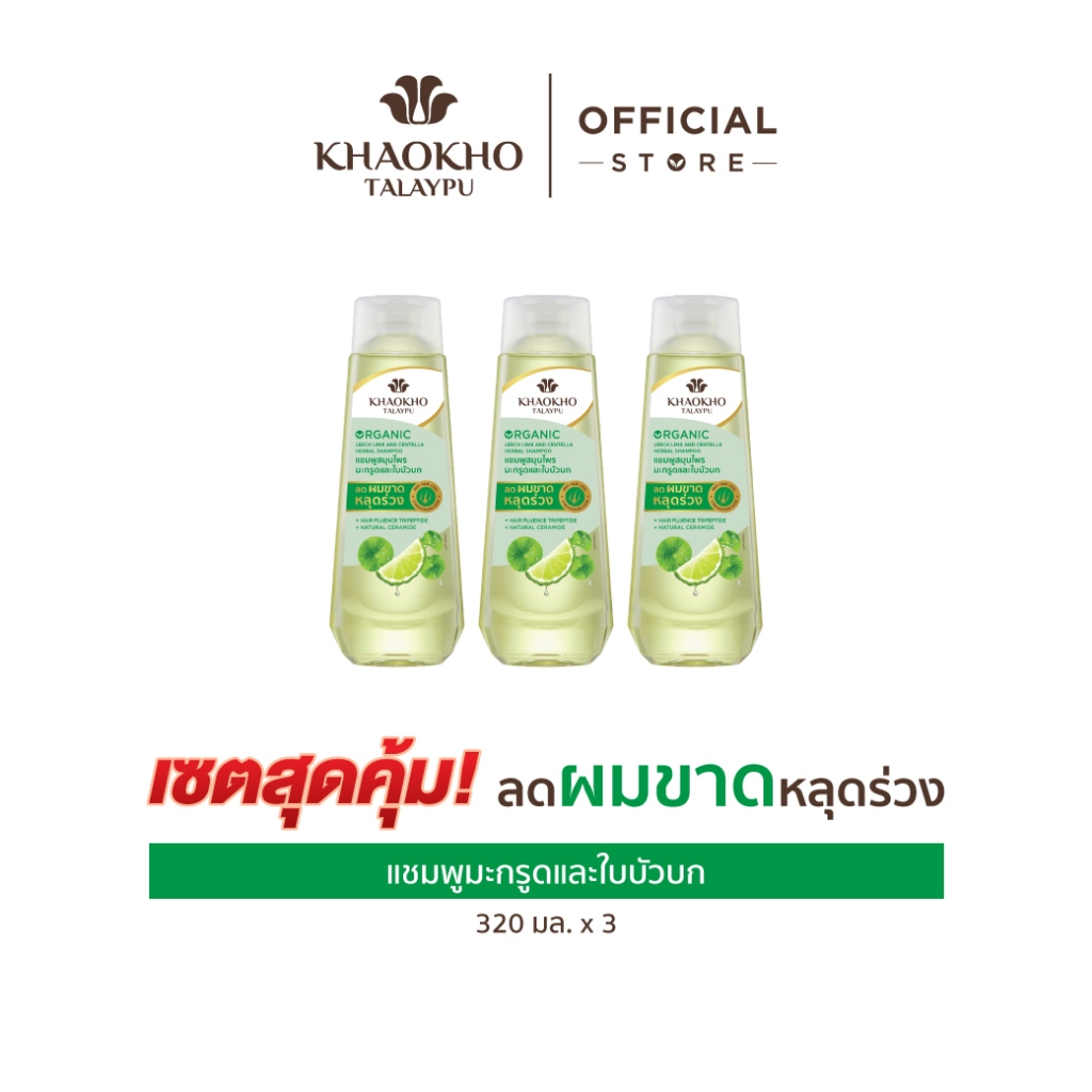 Khaokho Talaypu เขาค้อทะเลภู แชมพู สูตรมะกรูดและใบบัวบก ช่วยลดผมร่วง (320 มล.)