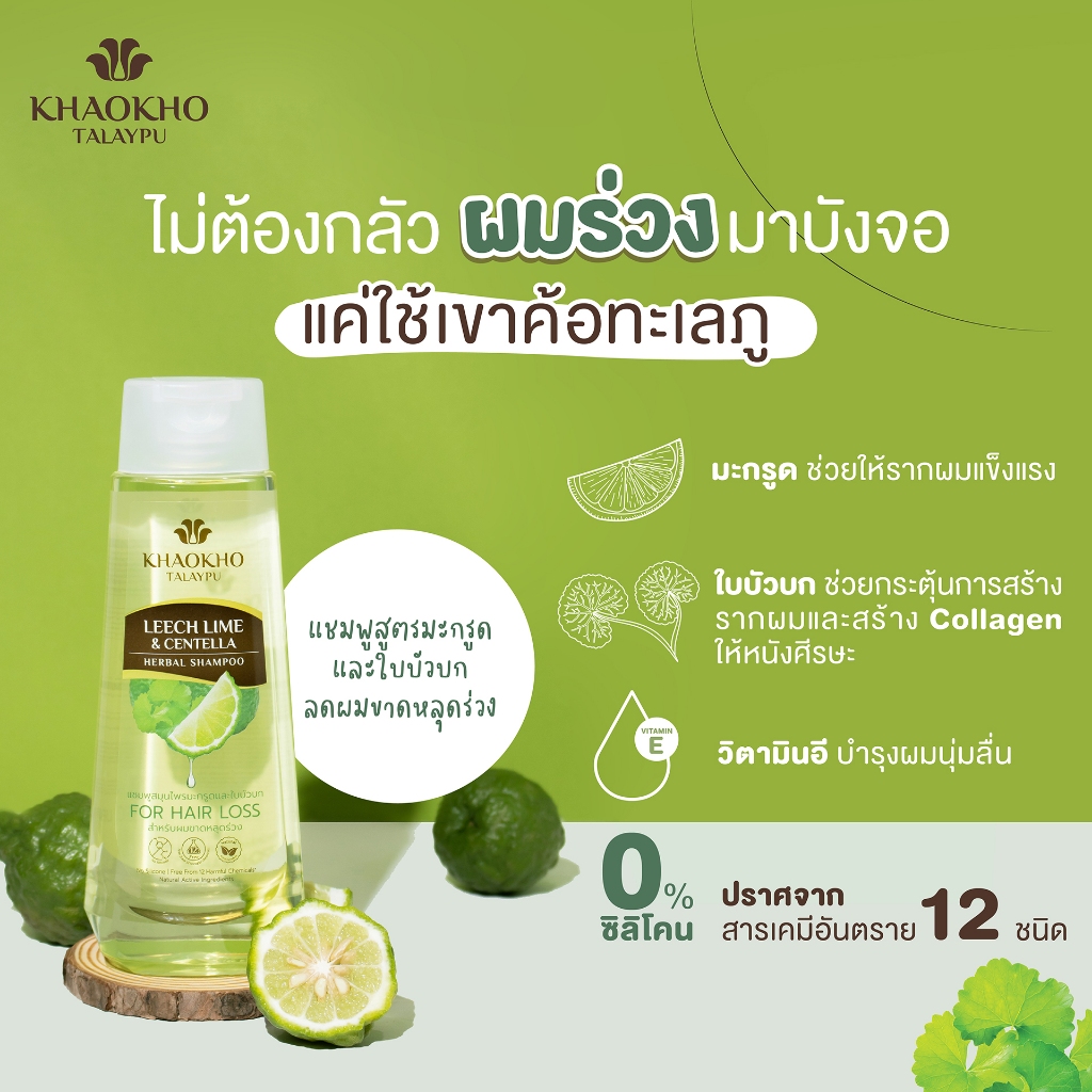 Khaokho Talaypu เขาค้อทะเลภู ครีมนวด สูตรมะกรูดและใบบัวบก ลดผมร่วง (185 มล.)
