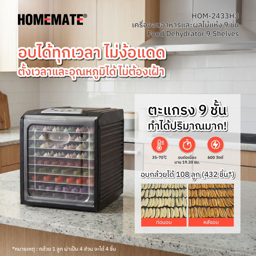 HOMEMATE เครื่องอบอาหารและผลไม้แห้ง 9 ชั้น รุ่น HOM-2433H3