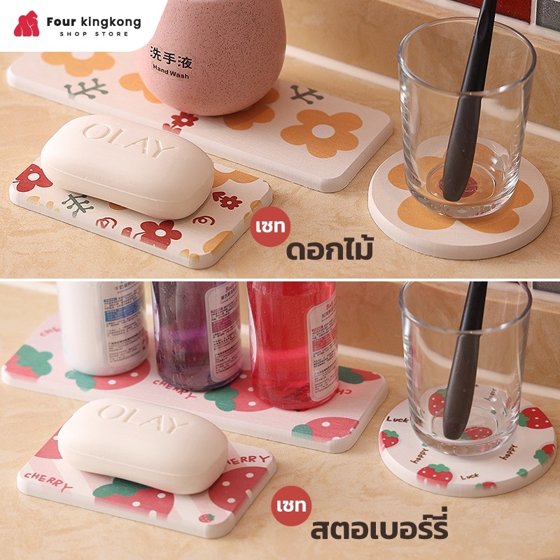 [F0402] แผ่น หินรองแก้ว ที่รองแก้ว ซึมซับน้ำไว แห้งไว ที่รองแก้วซับน้ำ แผ่นรองแก้ว จานวางแก้ว