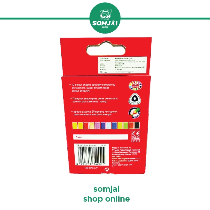Faber Castell - เฟเบอร์คาสเทล ดินสอสี ดินสอสีไม้ ดินสอสีด้ามสั้น รุ่น TRI COLOR จำนวน 12 สี