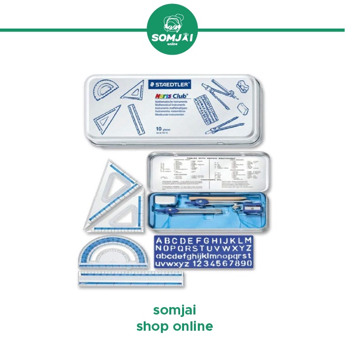 STAEDTLER - สเต็ดเล่อร์ ชุดเรขาคณิตพร้อมกล่องเหล็ก ไม้บรรทัดเรขาคณิต ชุดวงเวียนเรขาคณิต รุ่น Noris Club No.55710