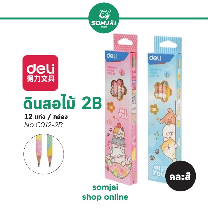 Deli - เดลี่ ดินสอไม้ 2B บรรจุ 12 แท่ง รุ่น No.C012-2B แบบคละสี