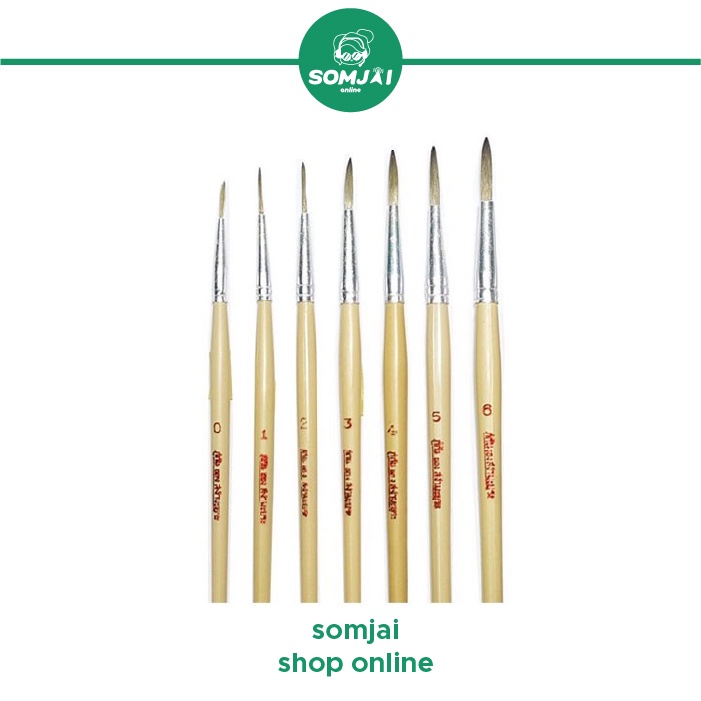 สง่า มะยุระ พู่กันสง่าชนิดหัวกลม พู่กันกลมขนสังเคราะห์ พู่กันสง่าขนสังเคราะห์ พู่กันเบอร์ 00 - 06