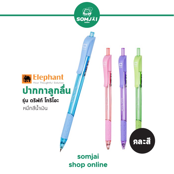 Elephant - ตราช้าง TORIO ปากกาลูกลื่นสีน้ำเงิน รุ่น ดริฟท์โทริโอะ ขนาด 0.5 mm. ด้ามคละสี