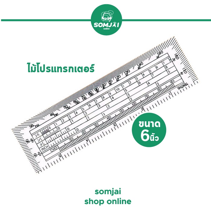 Somjai Selected ไม้โปรแทรกเตอร์ สีขาว ขนาด 6 นิ้ว