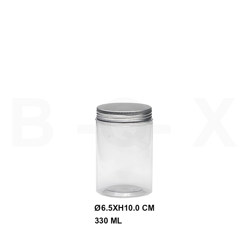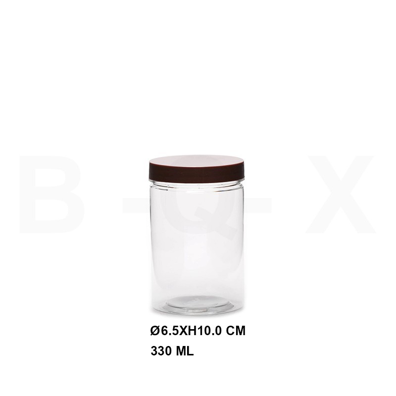 กระปุกพลาสติกใส เนื้อ PET บรรจุ 330 ml ฝาเกลียวมีหลายสีให้เลือก ขนาด 6.5x10 CM ฟรีโฟมปากกาว