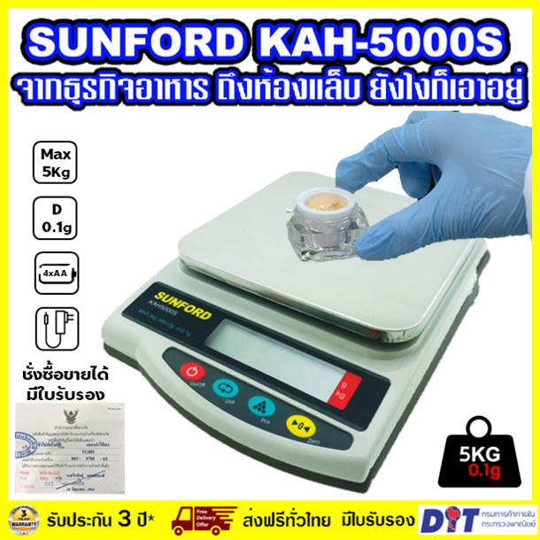เครื่อง ชั่งดิจิตอลความละเอียดสูง SUNFORD KAH-5000S พิกัด 5 กิโลกรัม ละเอียด 0.1 กรัม