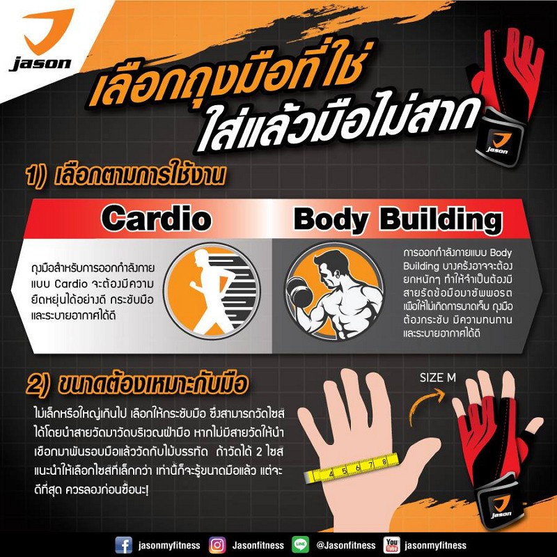 JASON X-Challenge เจสัน ถุงมือคาดิโอ ระบายอากาศได ้ดี หนังสังเคราะห์ (10JS00112)