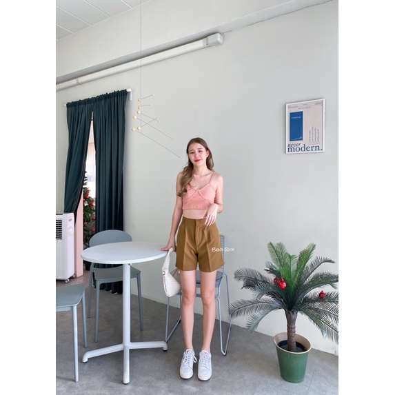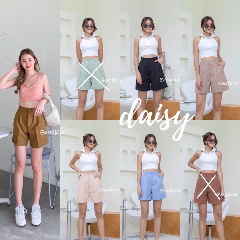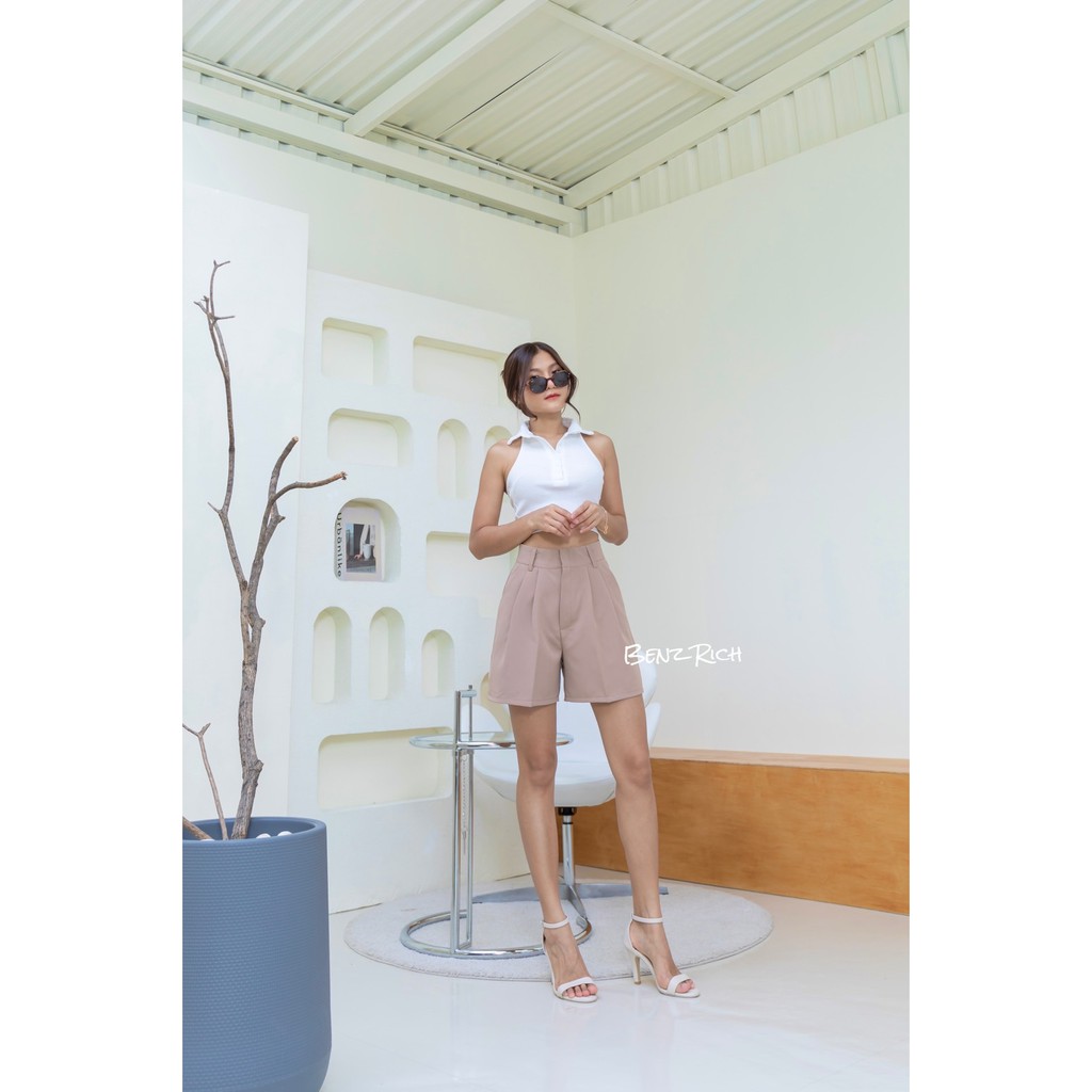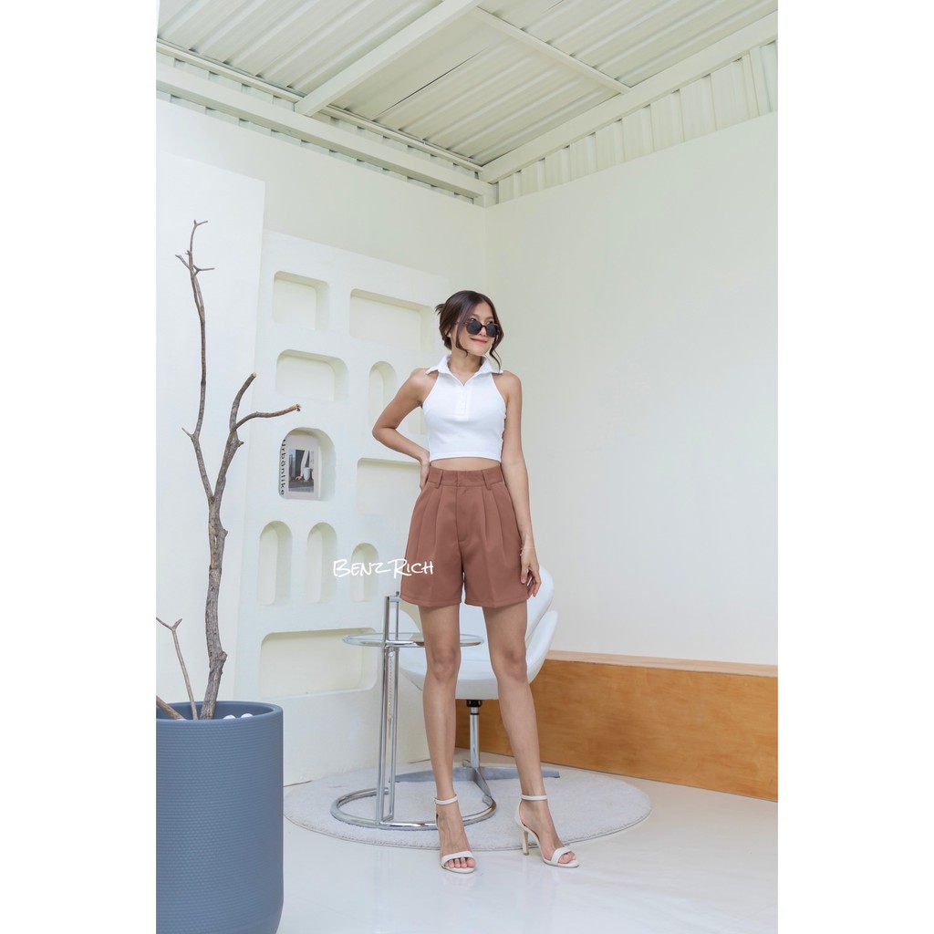 [ ลด 30 ใส่โค้ดWFCXXH ] กางเกงแฟชั่น กางเกงขาสั้น เอวตะขอ ดีเทลรีดเกร็ดหน้า