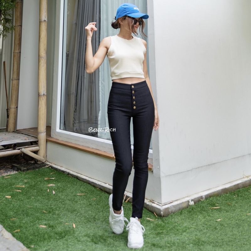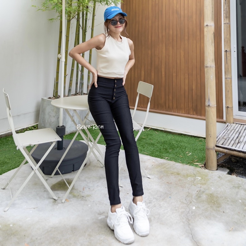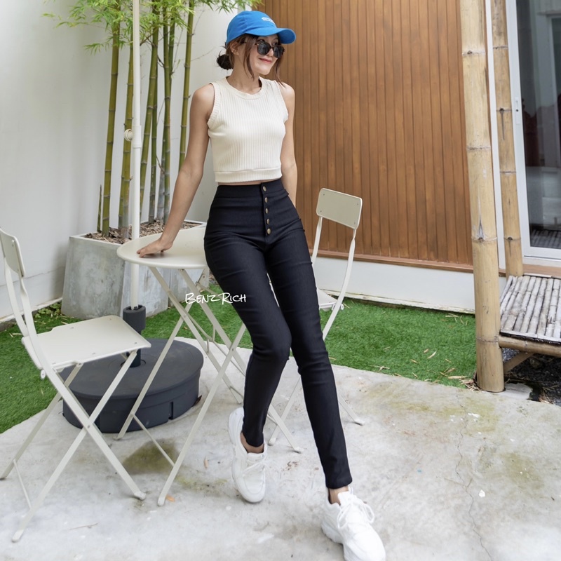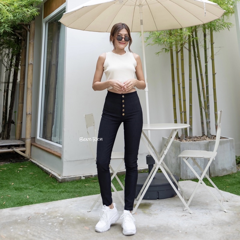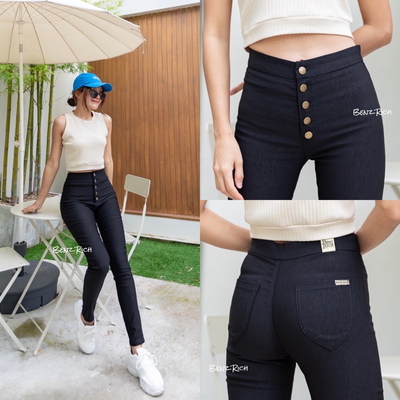 [ ลด15% โค้ด8BENZR ] สกินนี่ป้ายทอง สักหลาดกระดุม5เม็ด (S-4XL) ขายาวเดฟกระดุมใช้งานได้จริง กางเกงแฟชั่นกางเกงทำงาน