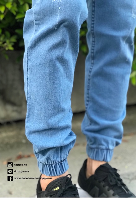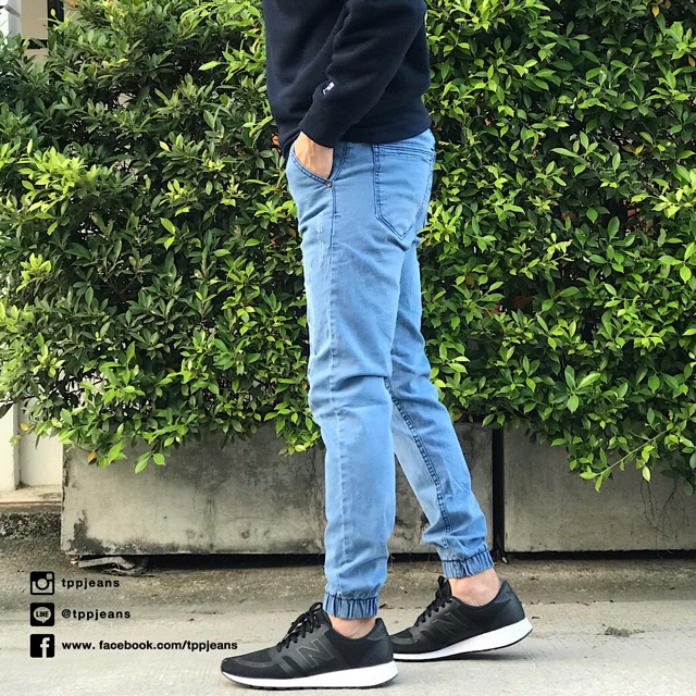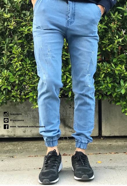 (เอว28”-44”)JXP Jogger jeans กางเกงขาจั้มชายสีบลูฟอกซีด เอวยาง มีเชือกผ้ายืด Size 28-54 รับชำระปลายทาง