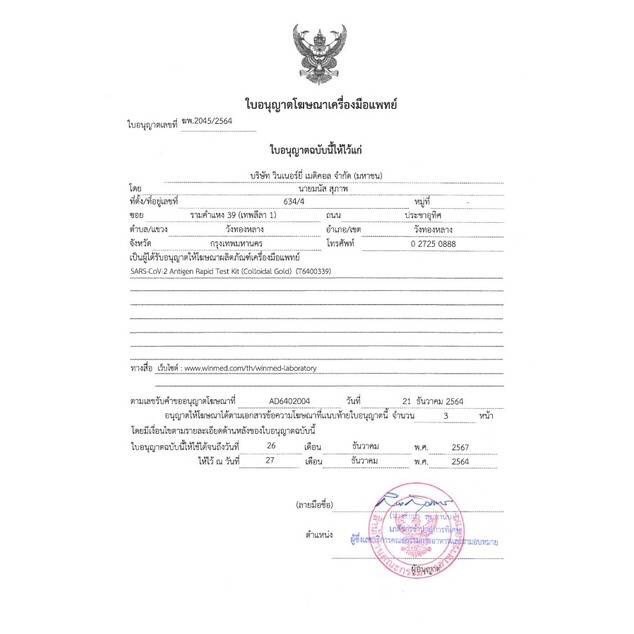 ชุดตรวจโควิด-19 ยี่ห้อ Joysbio บรรจุ 1 เทสต่อกล่อง ATK SARS-COV-2-Antigen Ra