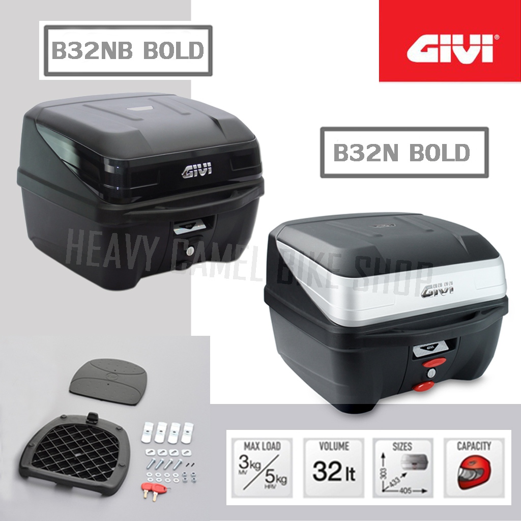 กล่องท้าย GIVI B32N BOLD สีเทา - B32NB BOLD สีดำ ขนาด 32 ลิตร เก็บหมวกกันน๊อค 1 ใบ