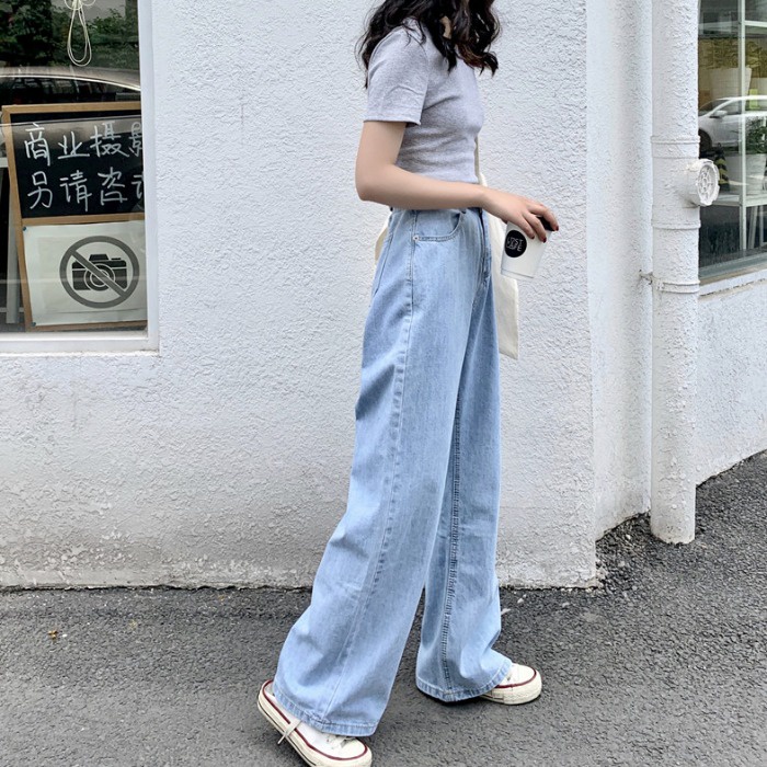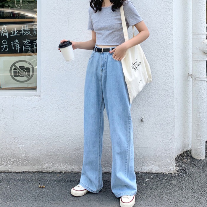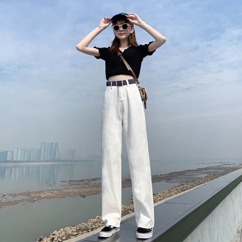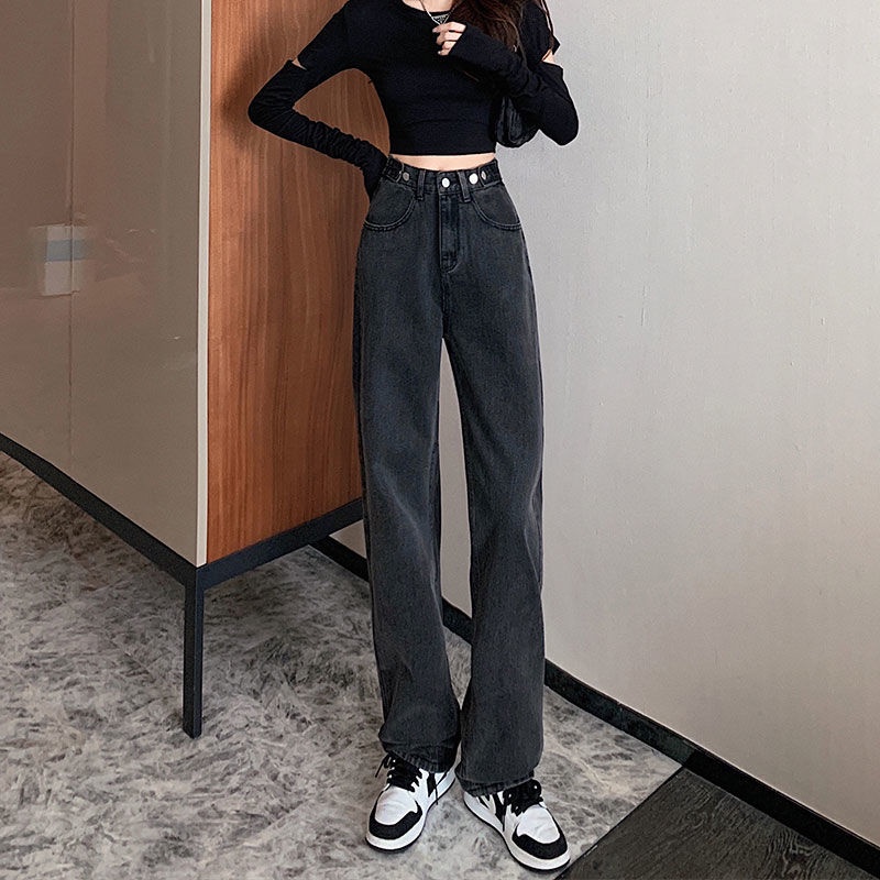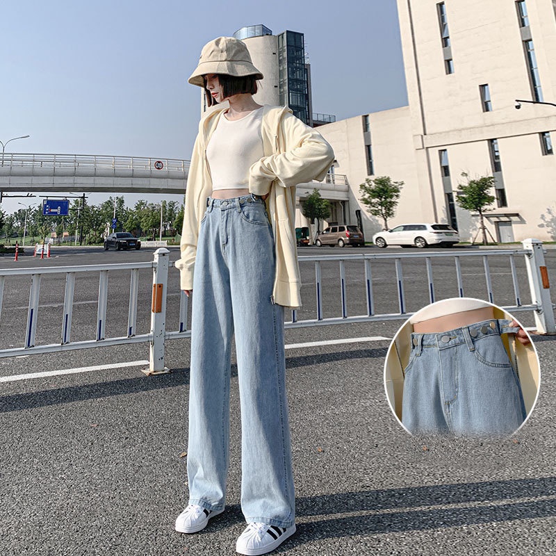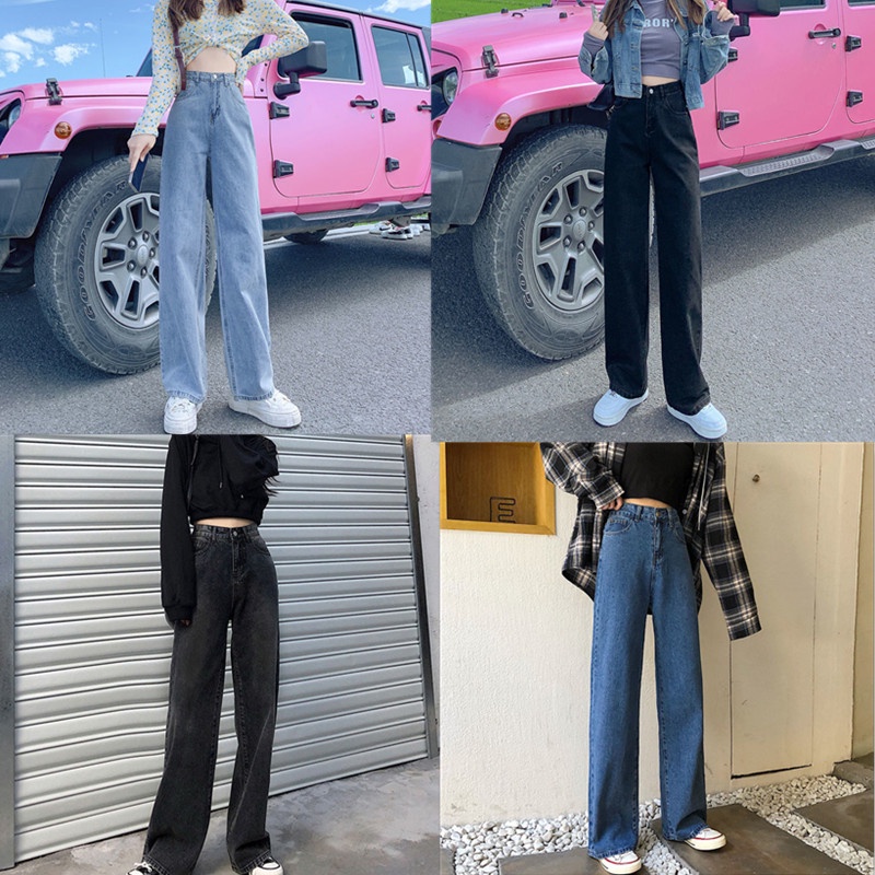 💥YH#588💥มี ไซซ์ S-2XL💥กางเกงยีนส์ เอวสูง สไตล์เกาหลี แนววินเทจ เท้ากว้าง กางเกงยีนส์ขายาว