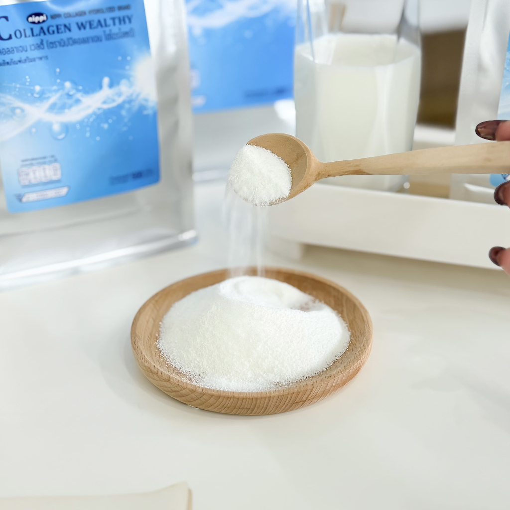 (ขายดี🔥) WEALTHY COLLAGEN ขนาด 250/500/1000 กรัม ไม่คาว ผิวใส ละลายไว คอลลาเจนพรีเมียม Nippi 100%