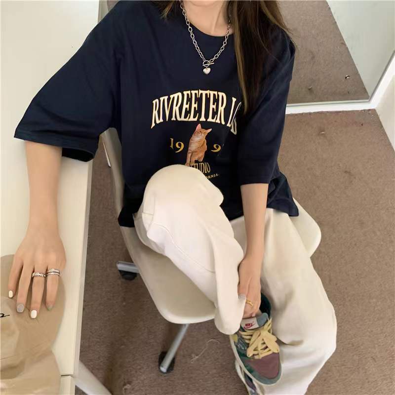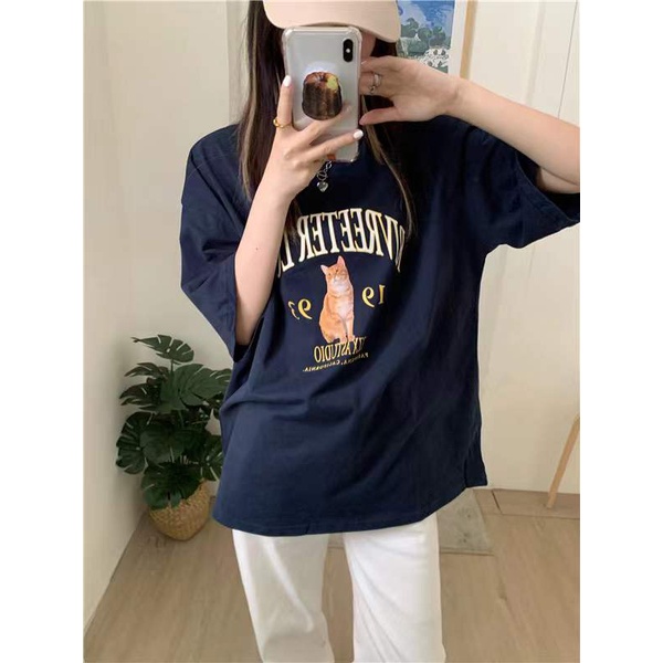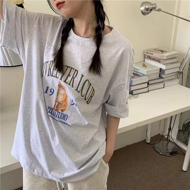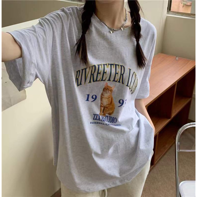 เสื้อยืดแขนสั้น😻โอเวอร์ไซด์ผู้หญิงแฟชั่นส่วนยาวหลวมของเวอร์ชั่นเกาหลี เสื้อยืดเสื้อคู่รัก ใส่สบาย133