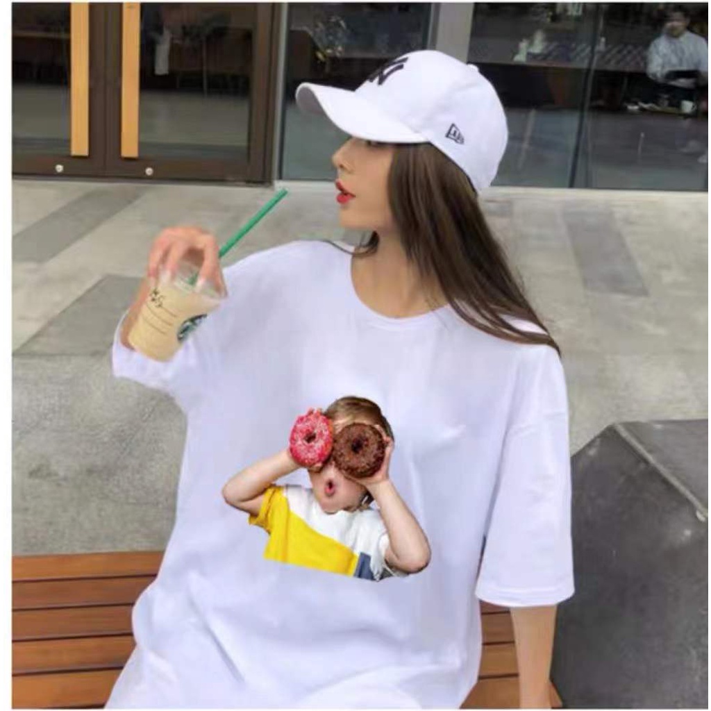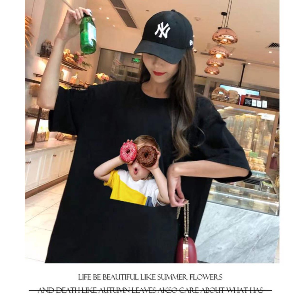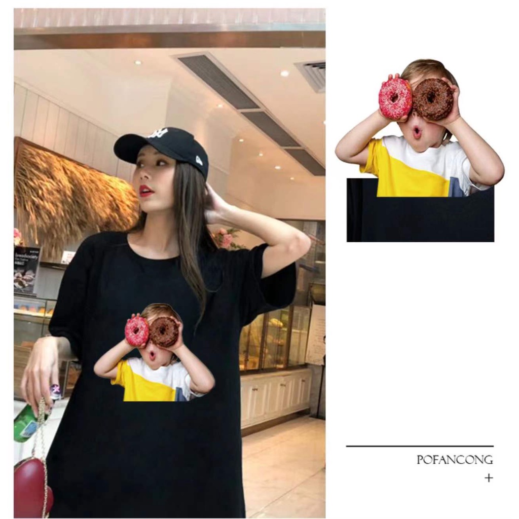 เสื้อยืดแขนสั้นโอเวอร์ไซด์ผู้หญิง ส่วนยาวหลวมของเวอร์ชั่นเกาหลี เสื้อยืดคู่รัก115