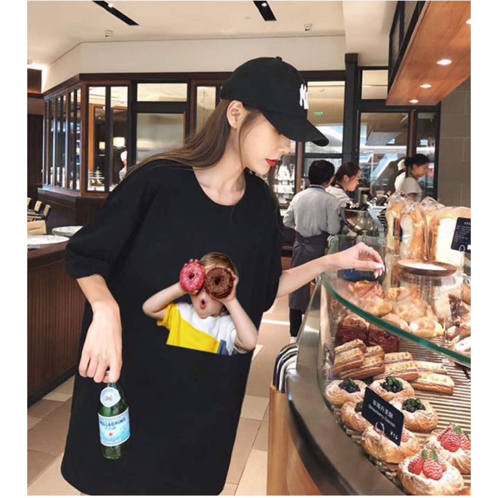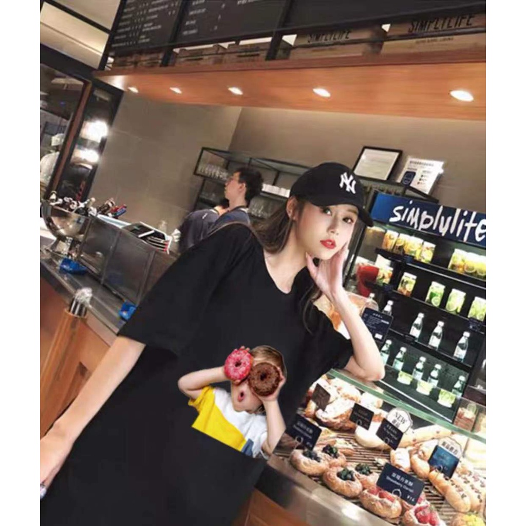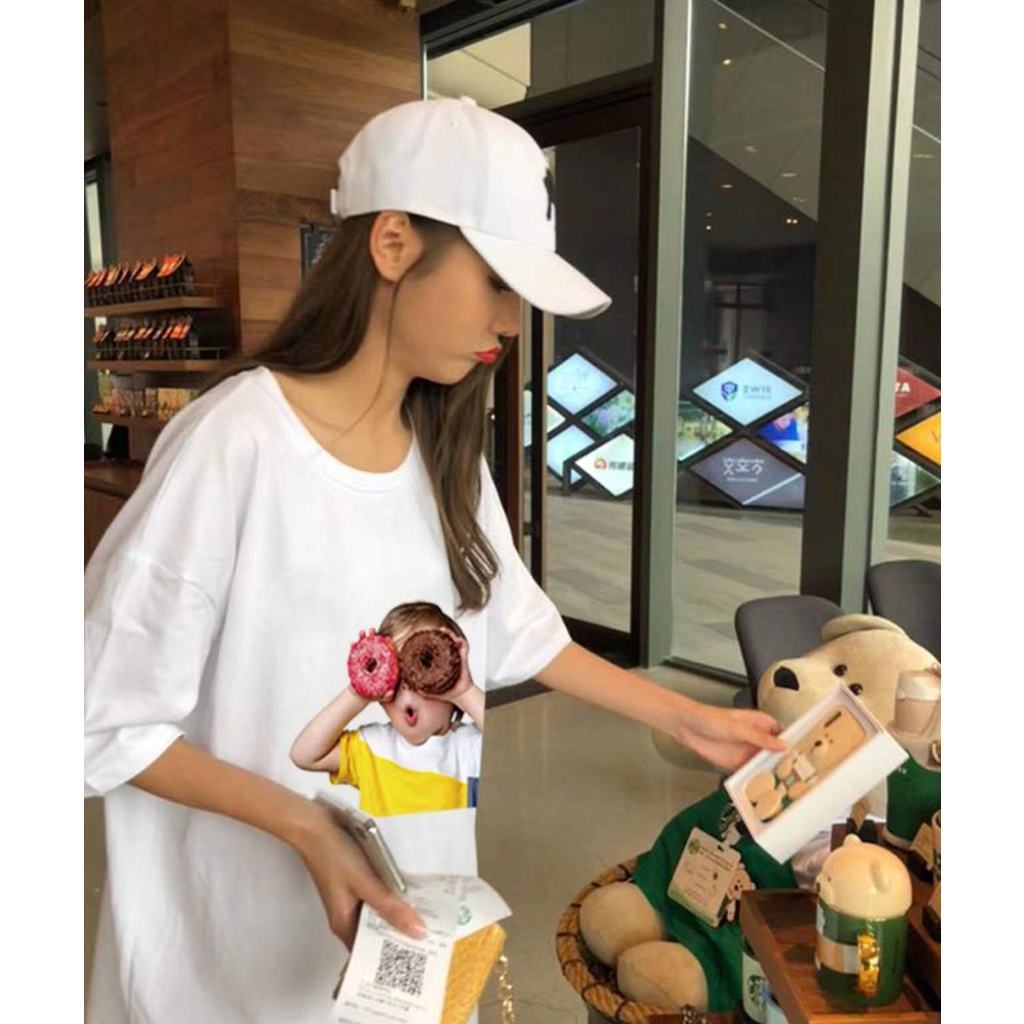 เสื้อยืดแขนสั้นโอเวอร์ไซด์ผู้หญิง ส่วนยาวหลวมของเวอร์ชั่นเกาหลี เสื้อยืดคู่รัก115