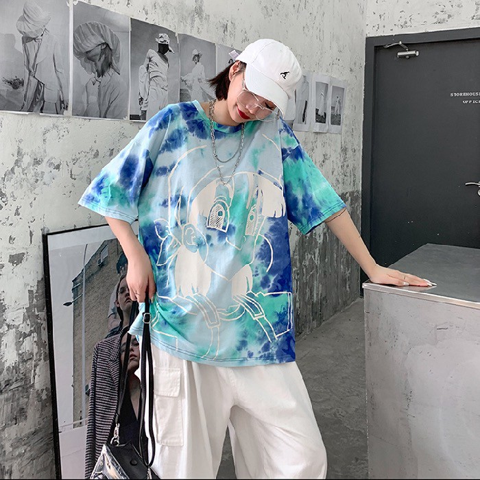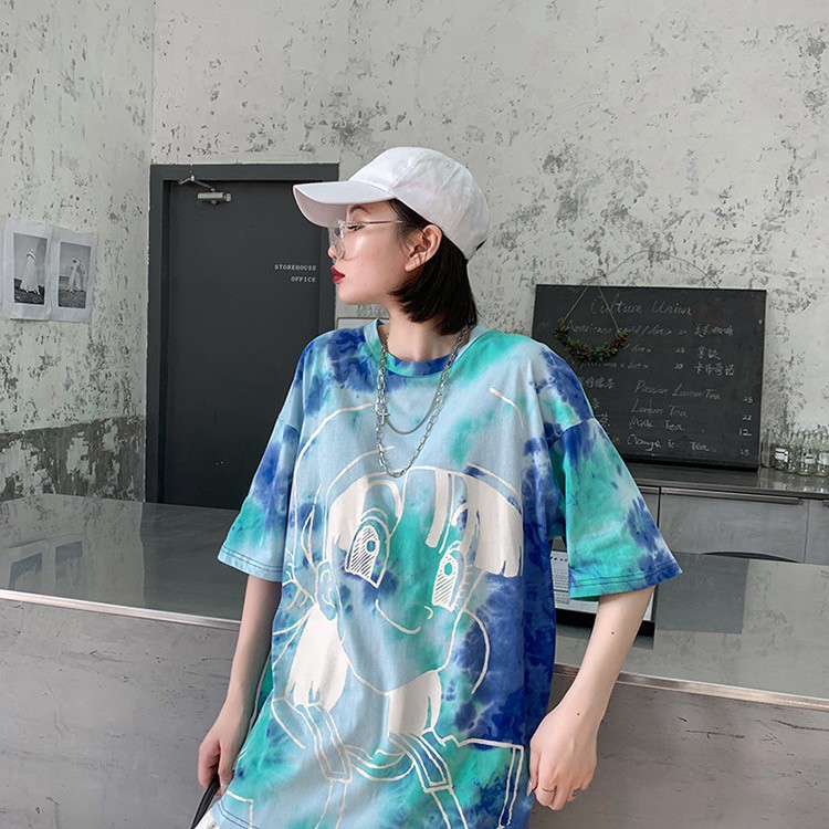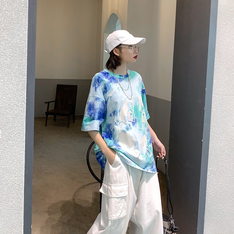 เสื้อยืดแฟชั่นแขนสั้นโอเวอร์ไซด์ผู้หญิงส่วนยาวหลวมของเวอร์ชั่นเกาหลี ใส่สบาย925