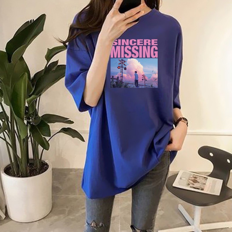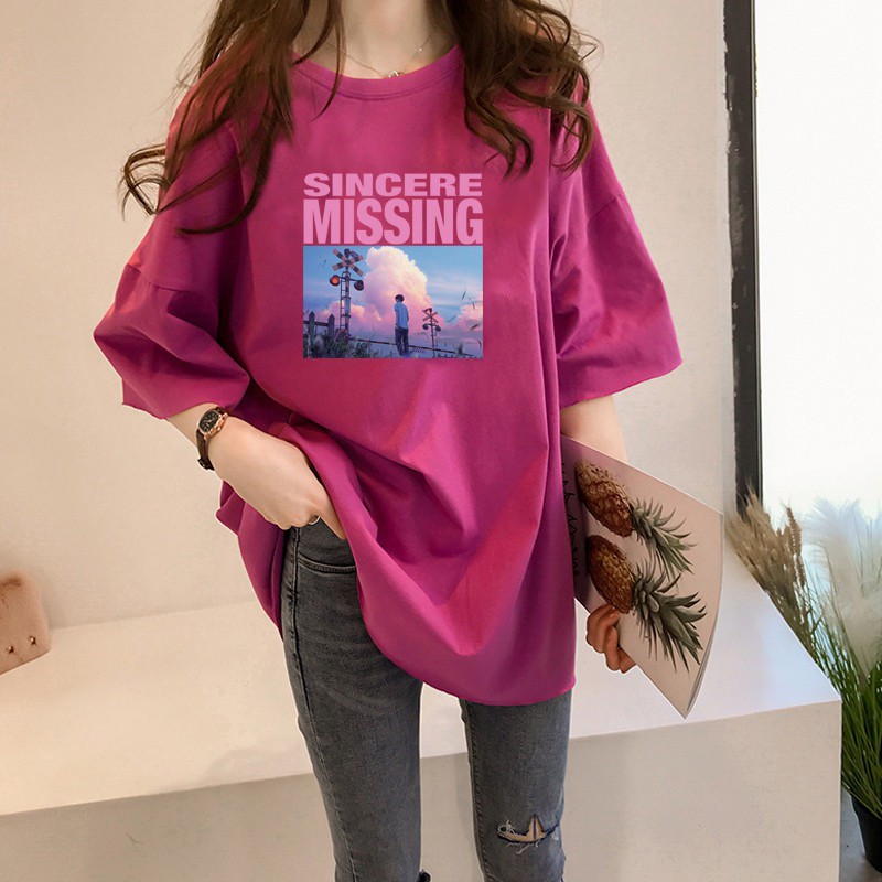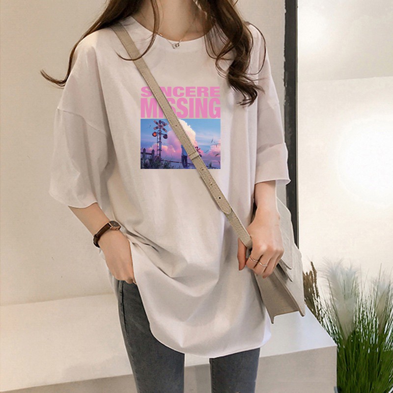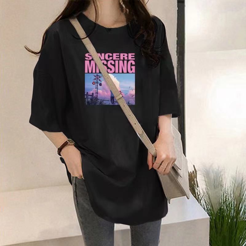 เสื้อยืดพู้หญิงแฟชั่นOversizedเดรส เสื้อสาวอวบพิมพ์ลายเส้นเสื้อผ้าทรงหลวม3224