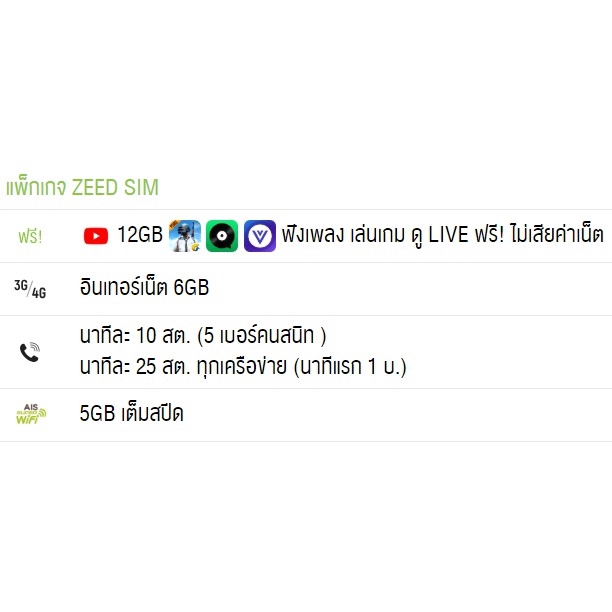ซิม AIS 12call zeed sim ซี้ดซิม ดูหนัง ฟังเพลง เล่นเกม ฟรี ไม่เสียค่าเน็ต