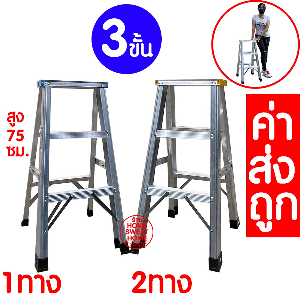 *Clearance* บันไดอลูมิเนียม ขนาด3-8ขั้น ขึ้นลงได้1ทาง2ทาง บันได อลูมิเนียม พับได้ ALUMINUMLADDER หัวพลาสติกสี กันลื่น