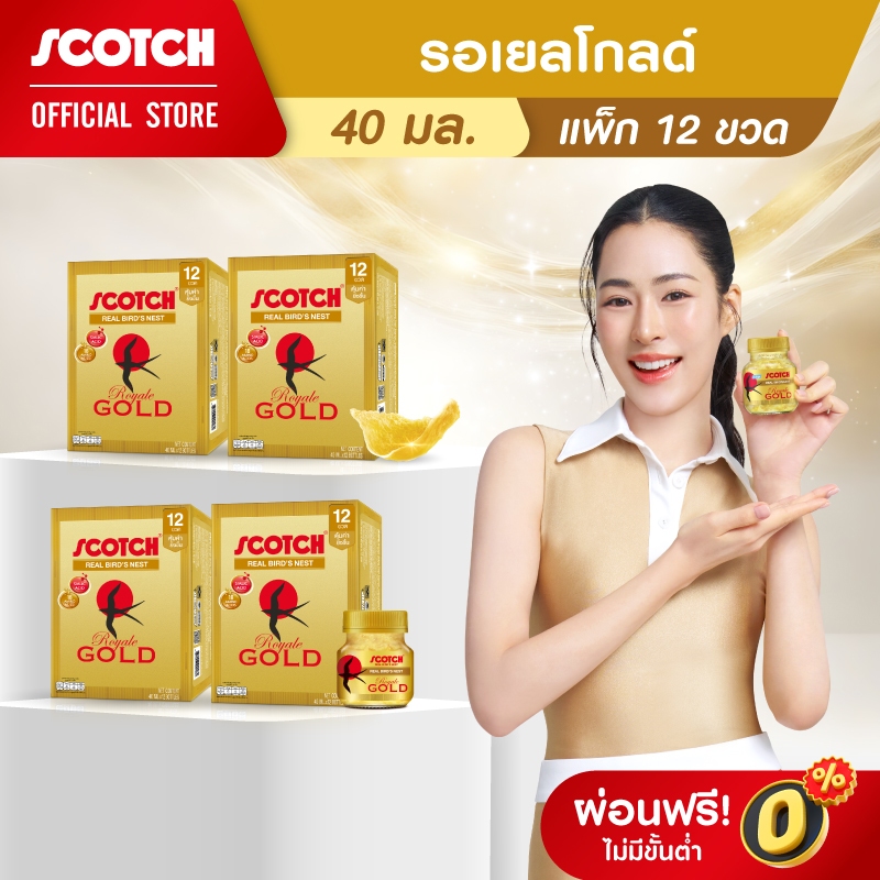 [3แถม1] Scotch สก๊อต รังนกแท้ รอเยล โกลด์ 40 มล. (แพ็ก 12 ขวด) จำนวน 3 แพ็ก แถมฟรี 1 แพ็ก จัดส่งฟรี!! 燕窝 Bird's nest