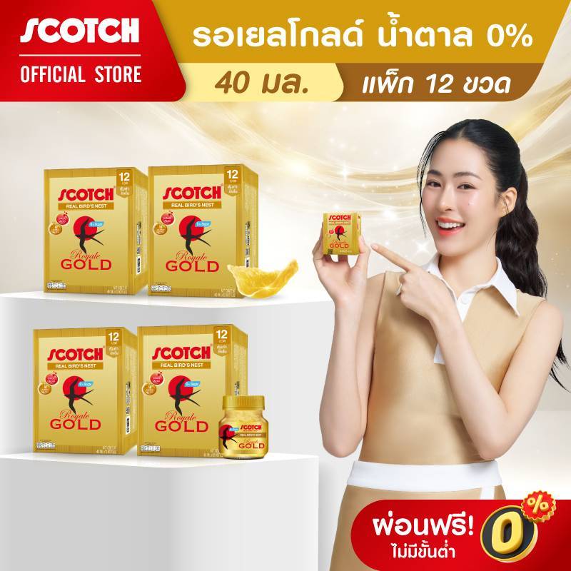 [3แถม1] Scotch สก๊อต รังนกแท้ รอเยลโกลด์ น้ำตาล0% 40 มล. แพ็ก 12 ขวด จำนวน 3 แพ็ก แถม 1 แพ็ก จัดส่งฟ รี! 燕窝 Bird's nest