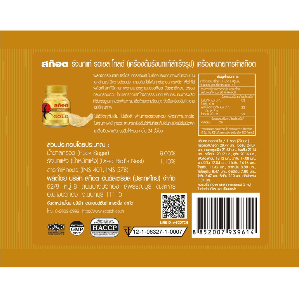 Scotch สก๊อต รังนกแท้ รอเยล โกลด์ 70 มล. (แพ็ก 6 ขวด) จำนวน 4 แพ็ก จัดส่งฟรี ของขวัญปีใหม่ 燕窝 Bird's nest