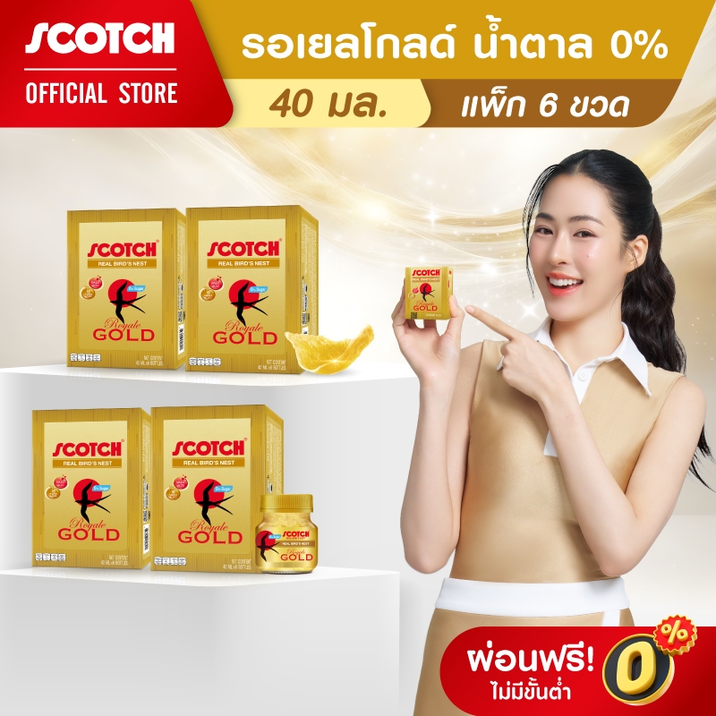 [ส่งฟรี] Scotch สก๊อต รังนกแท้ รอเยล โกลด์ น้ำตาล 0% 40 มล. (แพ็ก 6 ขวด) จำนวน 4 แพ็ก 燕窝 Bird's nest
