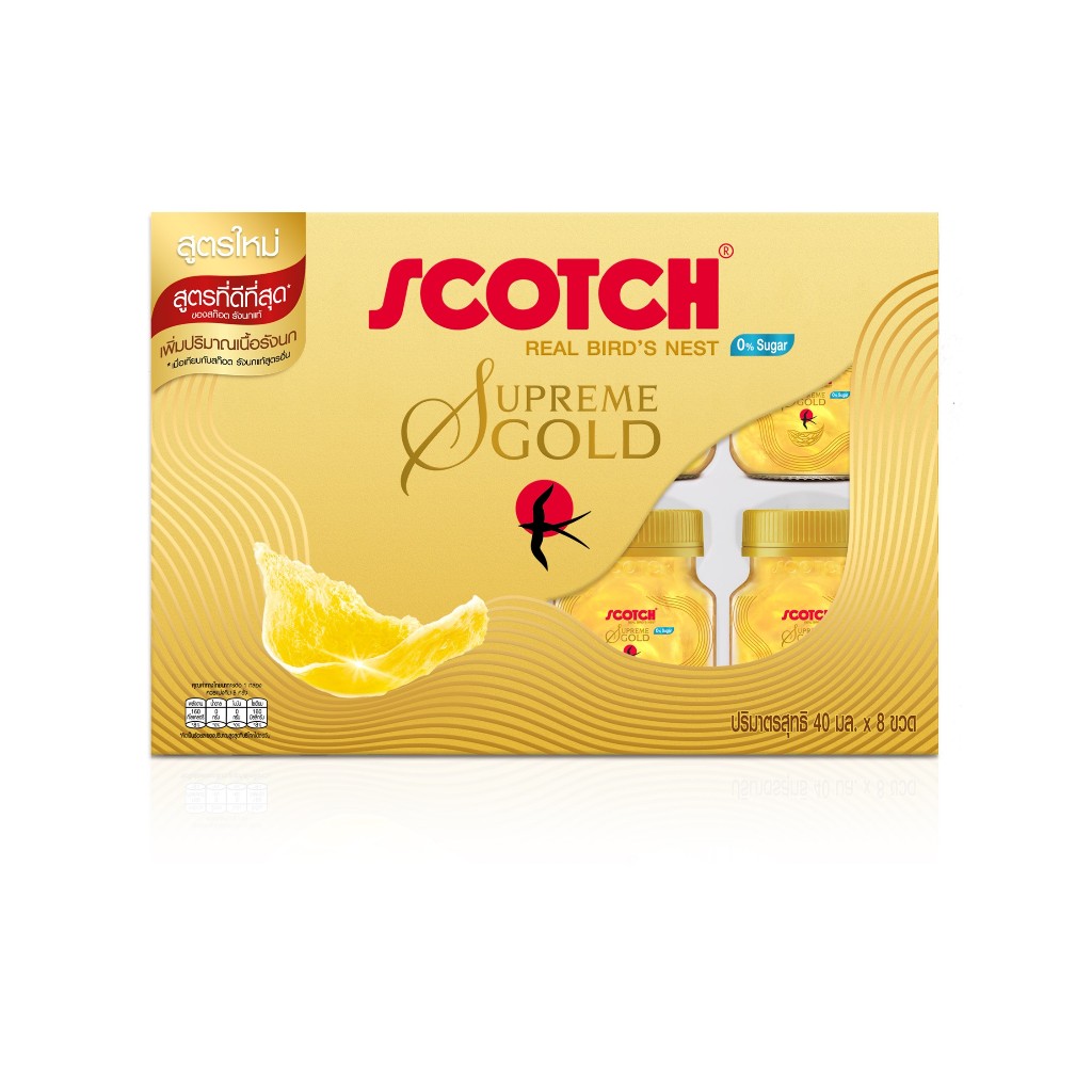 Scotch สก๊อต รังนกแท้ สุพรีม โกลด์ 40 มล. สูตรน้ำตาล 0% (แพ็ก 8 ขวด) จำนวน 2 แพ็ก รังนกแท้ สีเหลืองทอง เนื้อแน่น 燕窝