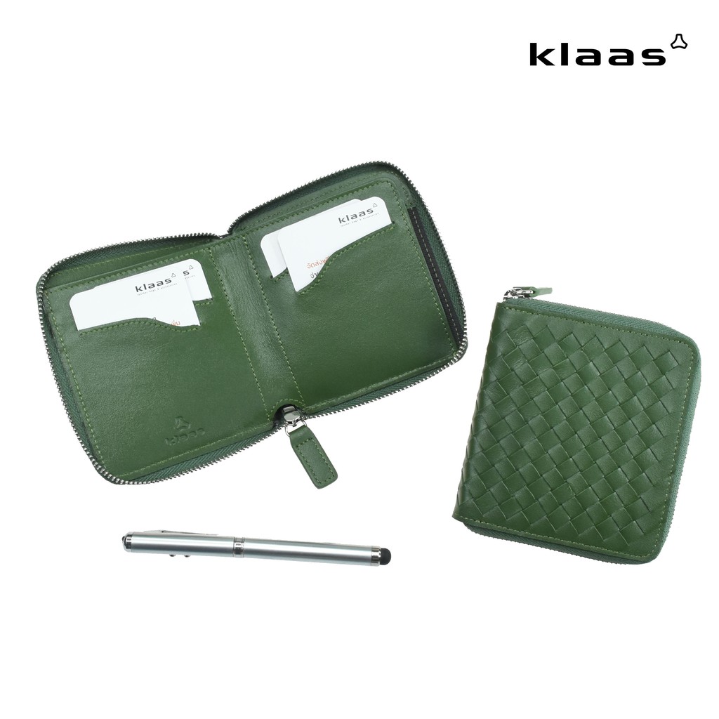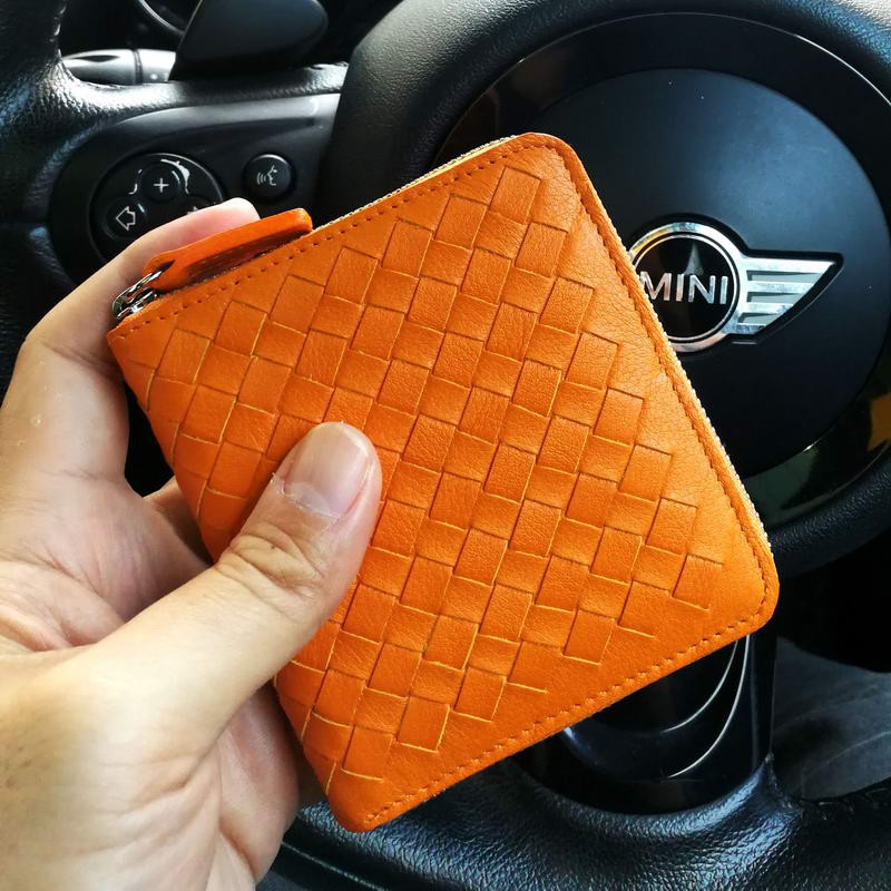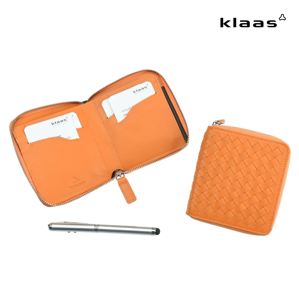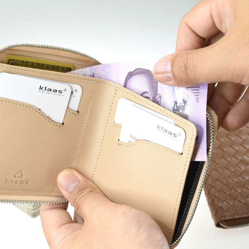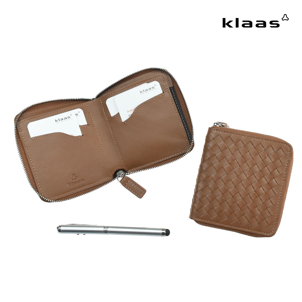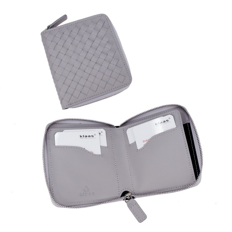 05-182 unisex compact zippy wallet กระเป๋าสตางค์สานหนังแท้ กระเป๋าตังค์สานหนังแท้ แบรนด์ k