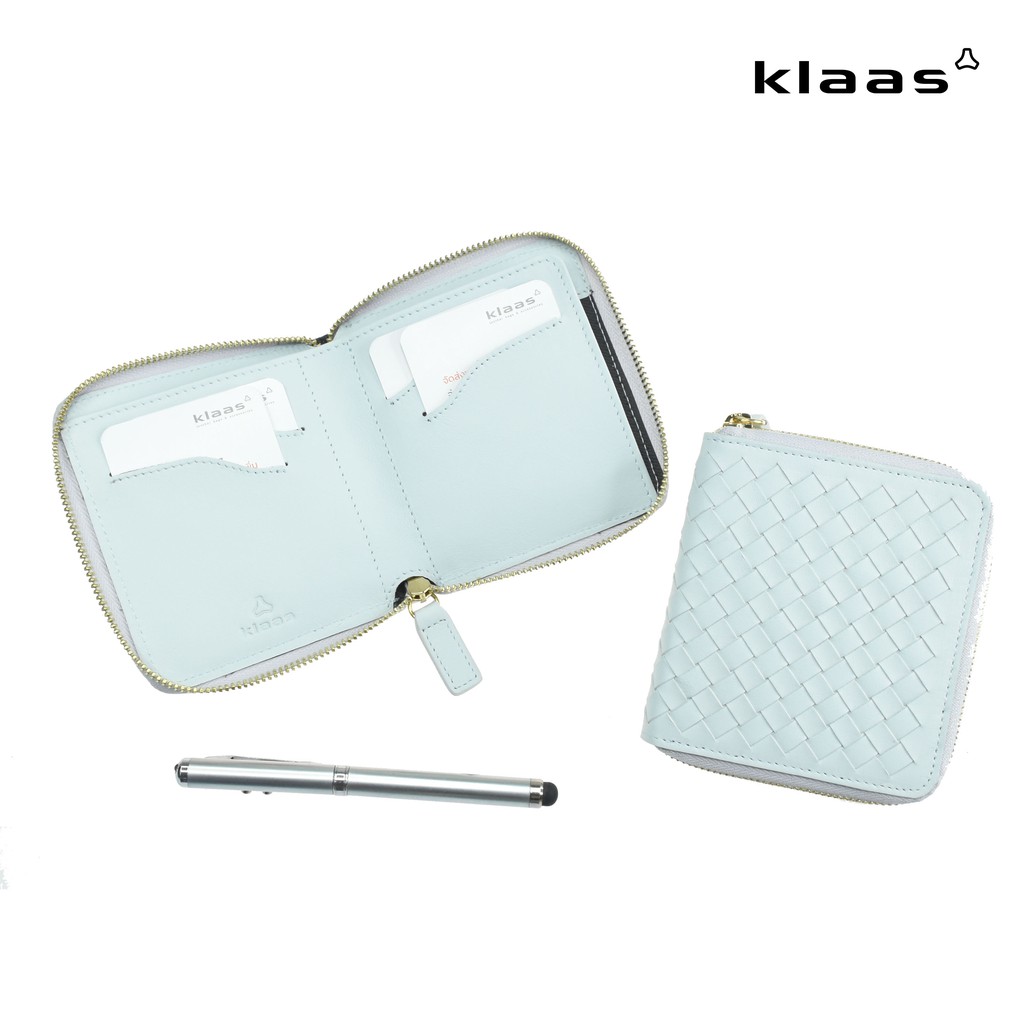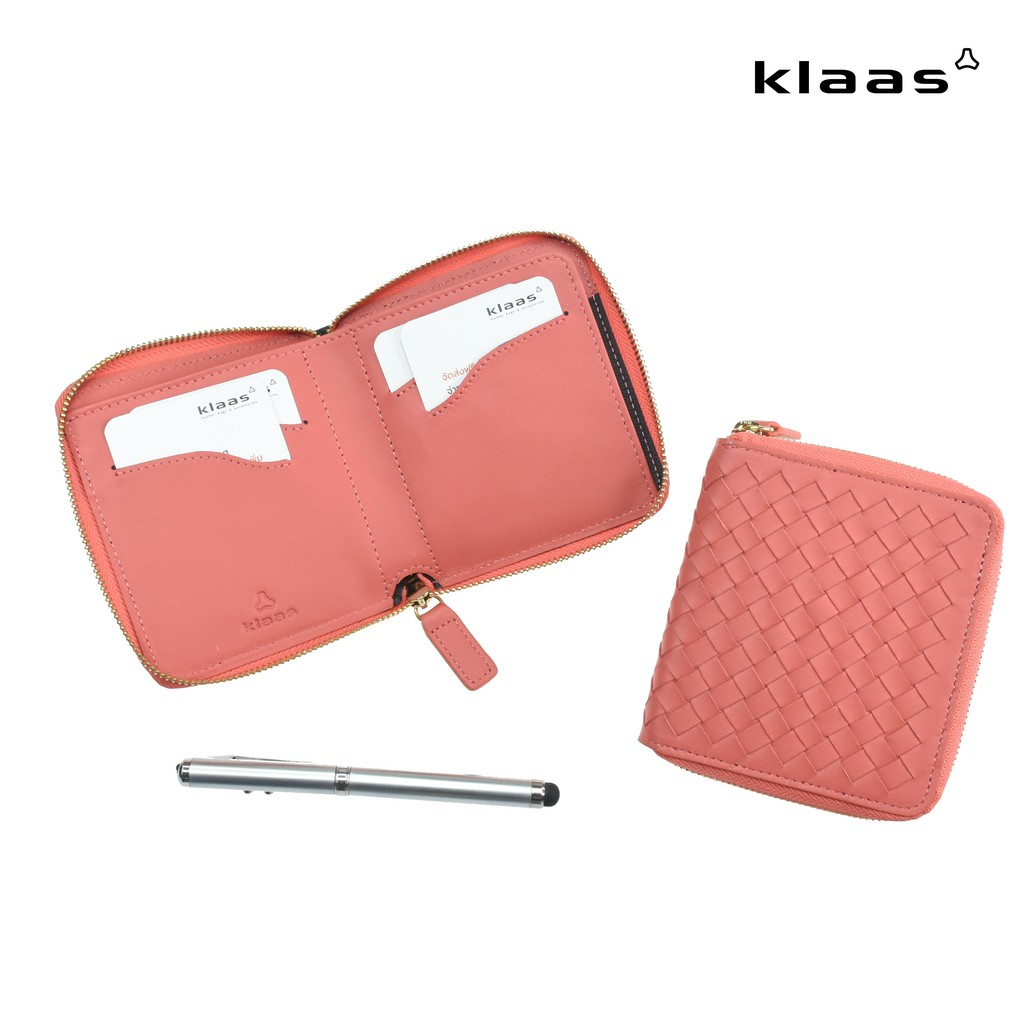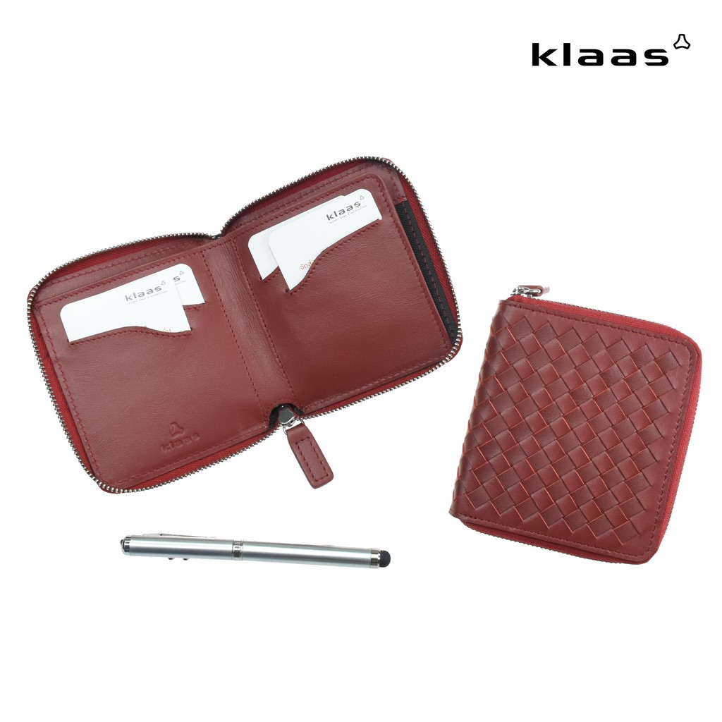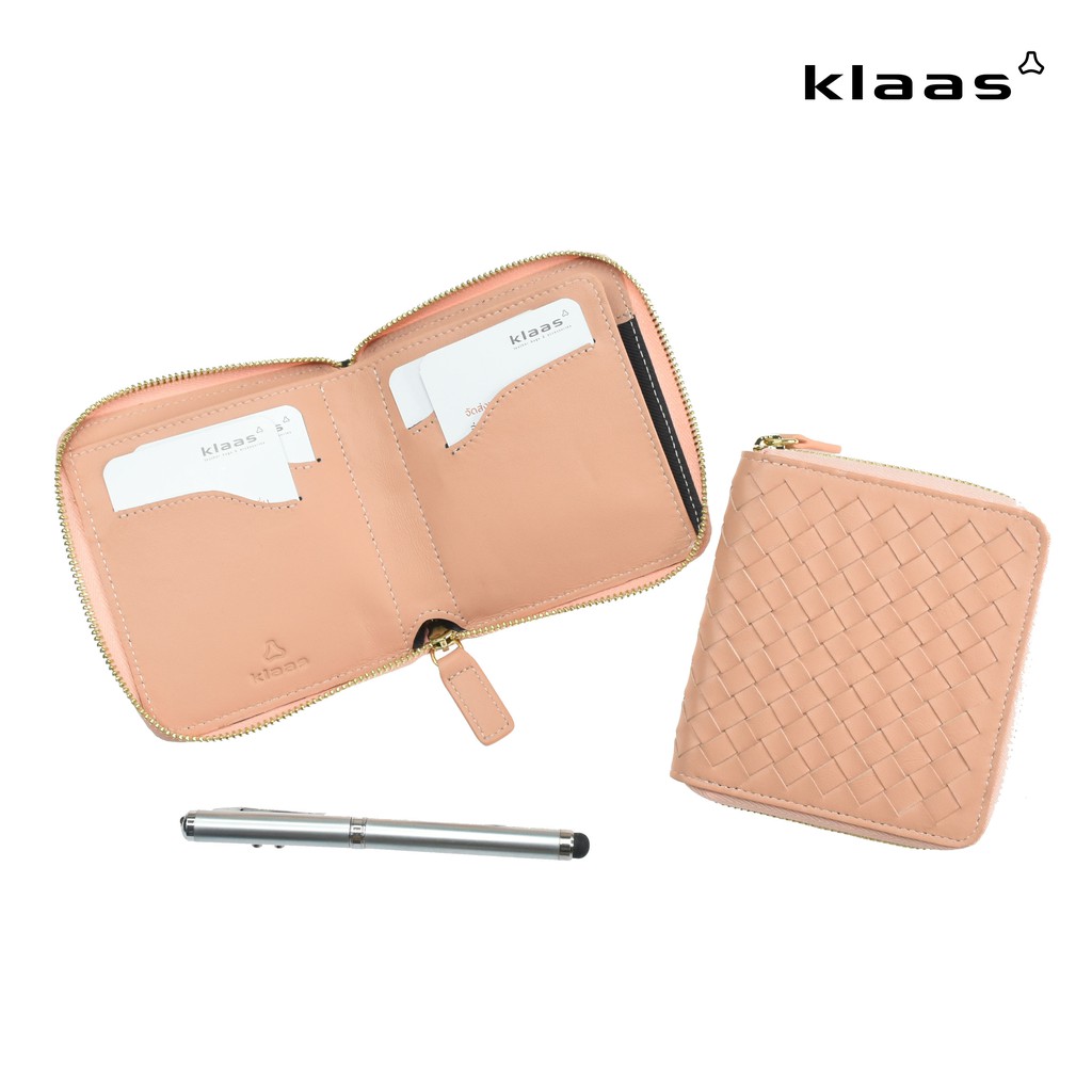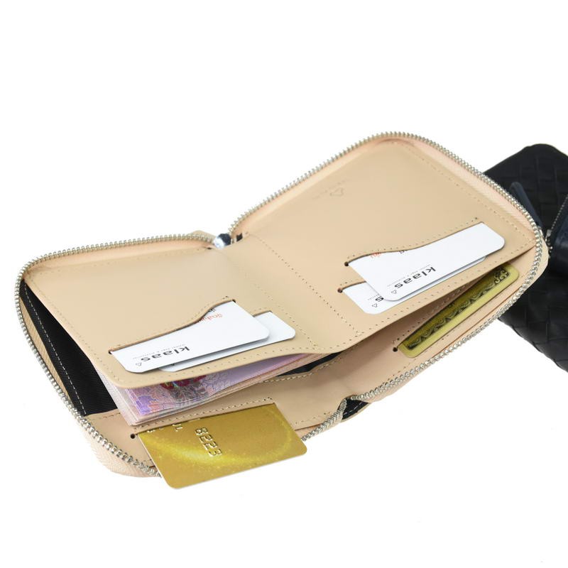 05-182 unisex compact zippy wallet กระเป๋าสตางค์สานหนังแท้ กระเป๋าตังค์สานหนังแท้ แบรนด์ k