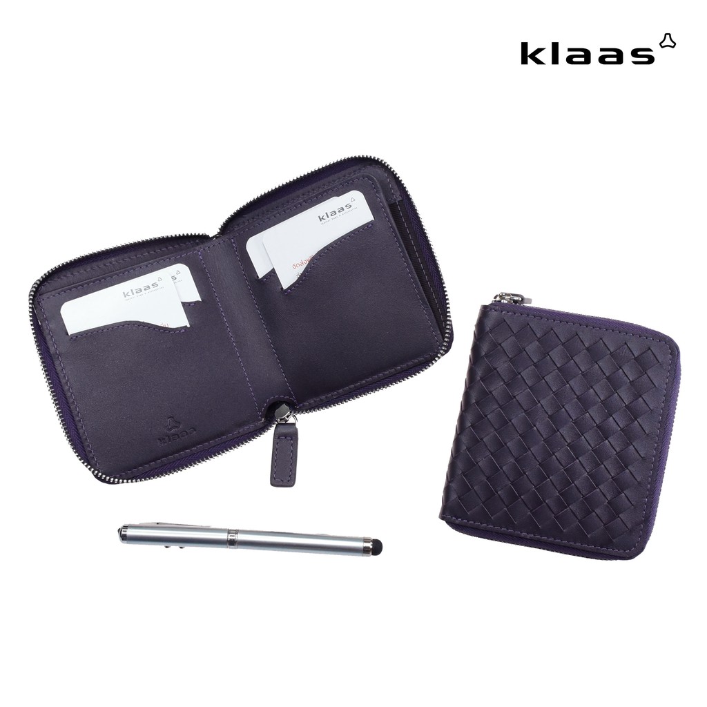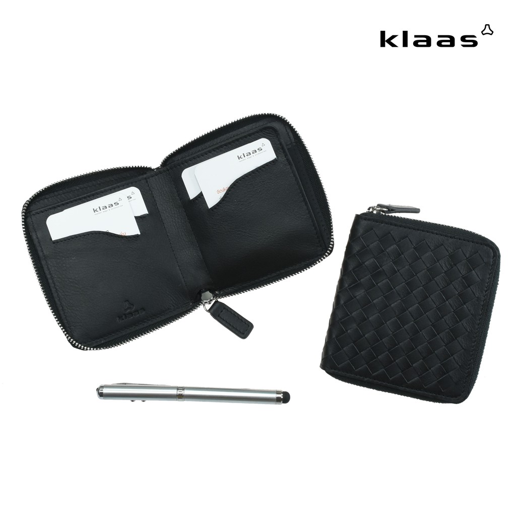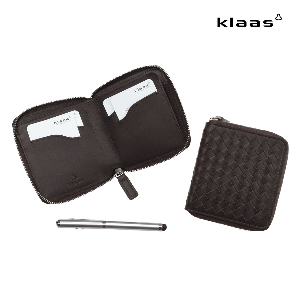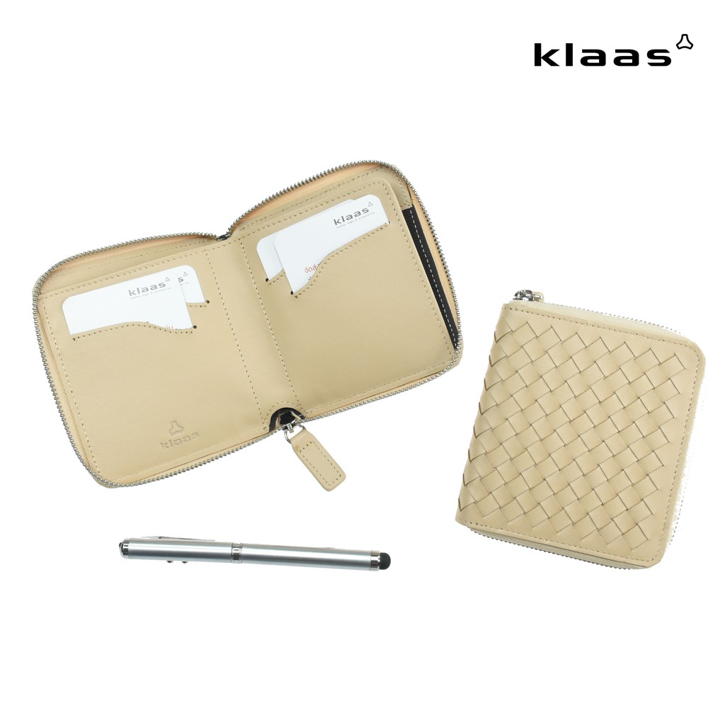 05-182 unisex compact zippy wallet กระเป๋าสตางค์สานหนังแท้ กระเป๋าตังค์สานหนังแท้ แบรนด์ k
