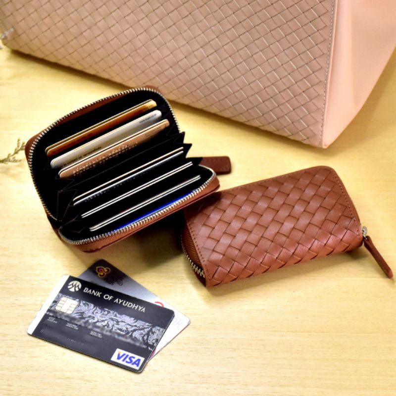 06-033 Credit Card Holder Intrecciato กระเป๋าใส่บัตรสานหนังแท้ แบรนด์ klaas ของแท้