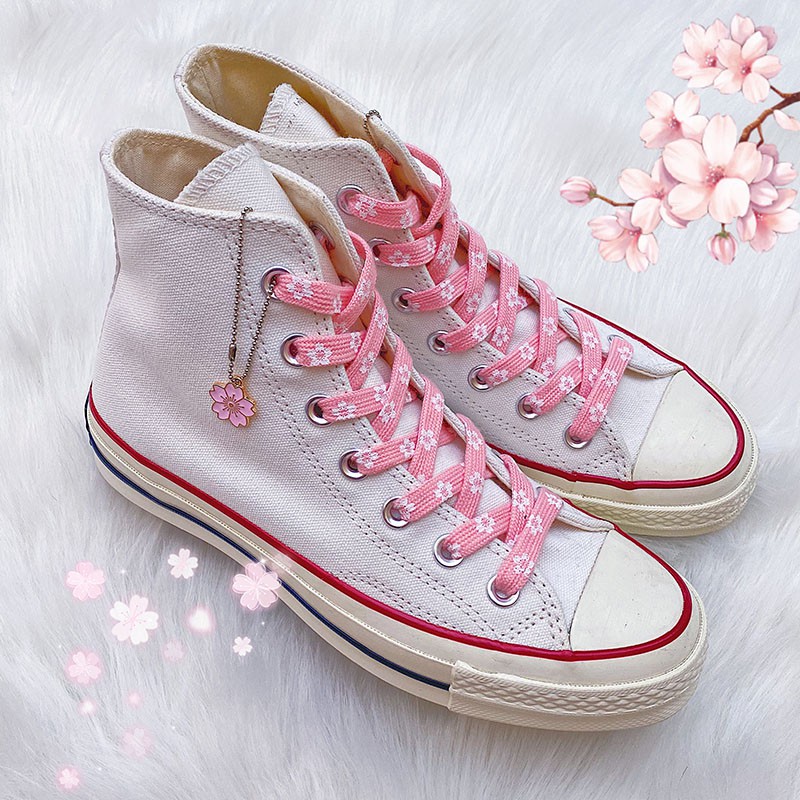 สายรองเท้า เชือกผูกรองเท้า ลายซากุระหลากสี 140 ซม1 คู่