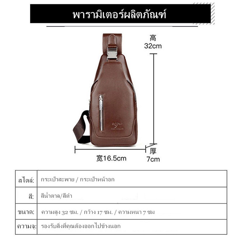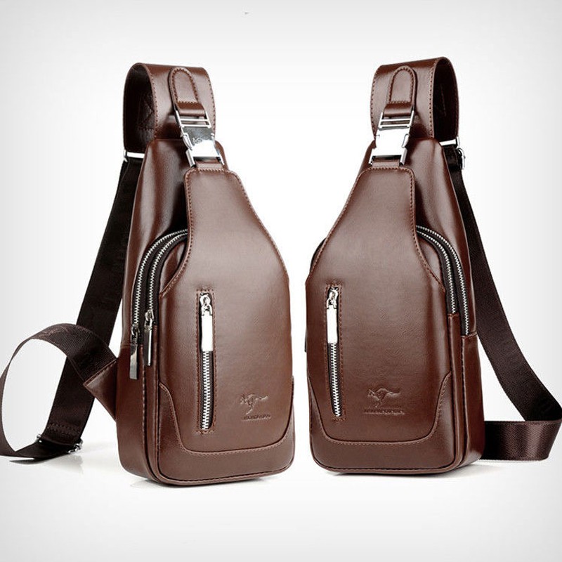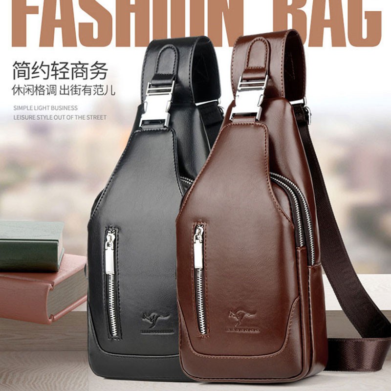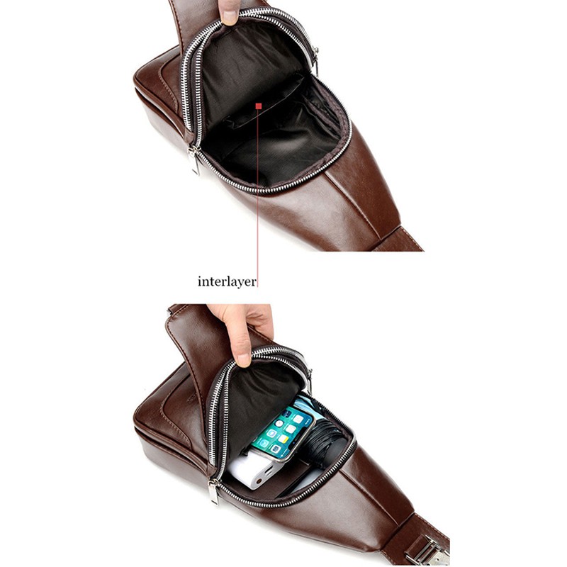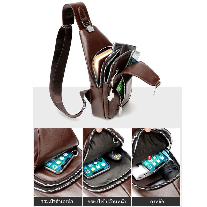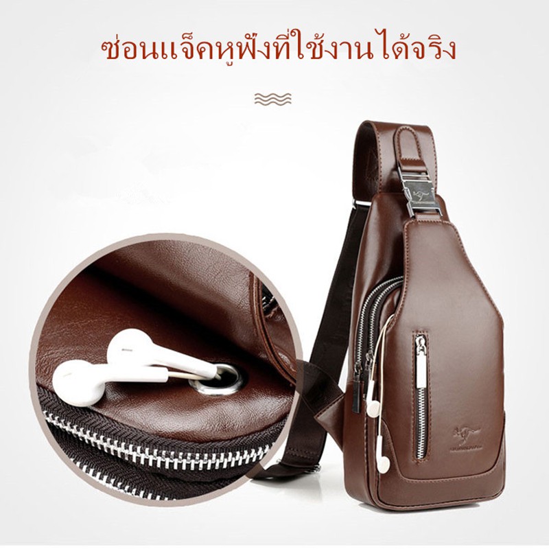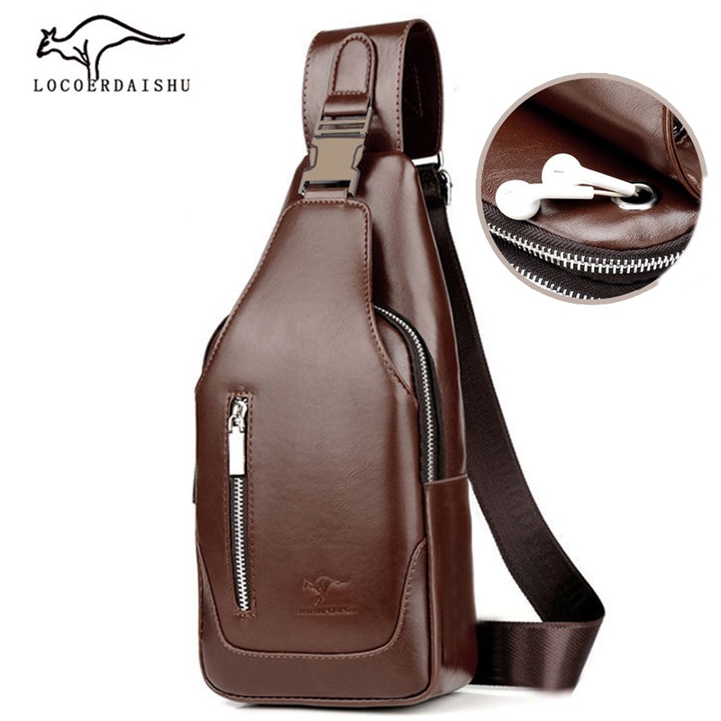 กระเป๋าสะพายหนังผู้ชายกระเป๋าหน้าอกหูฟังภายนอกกระเป๋า crossbody