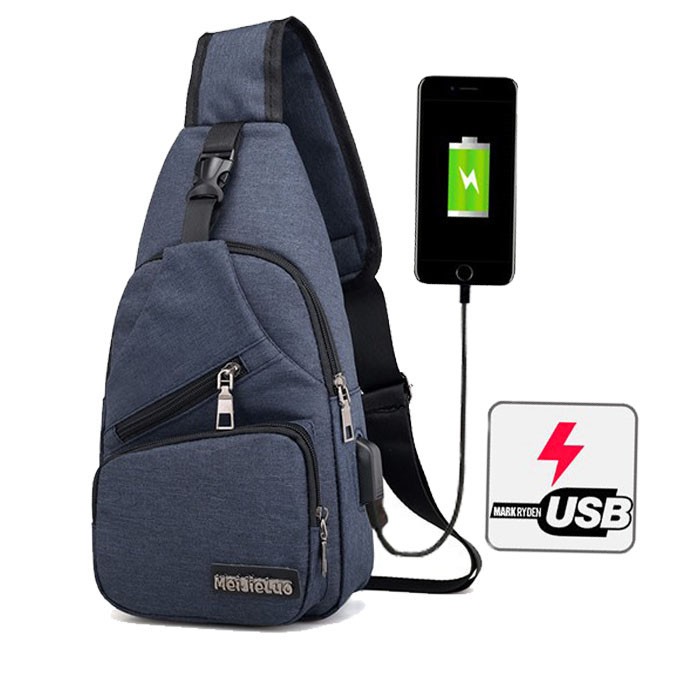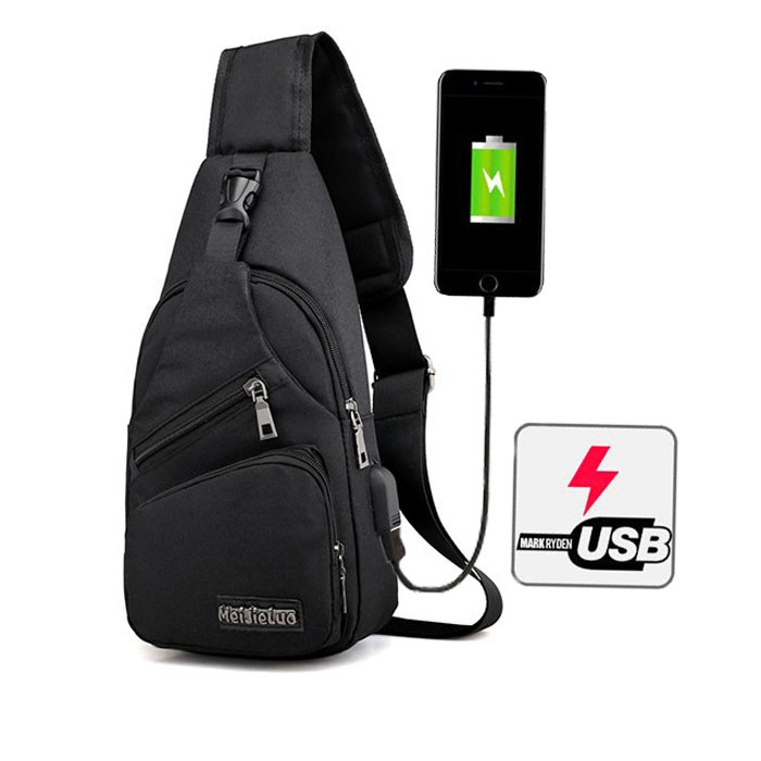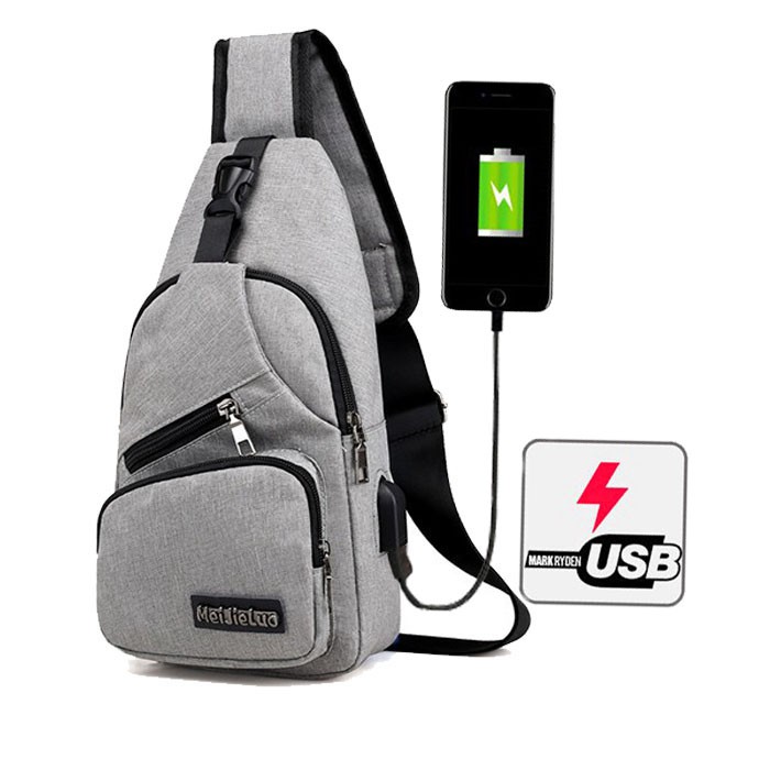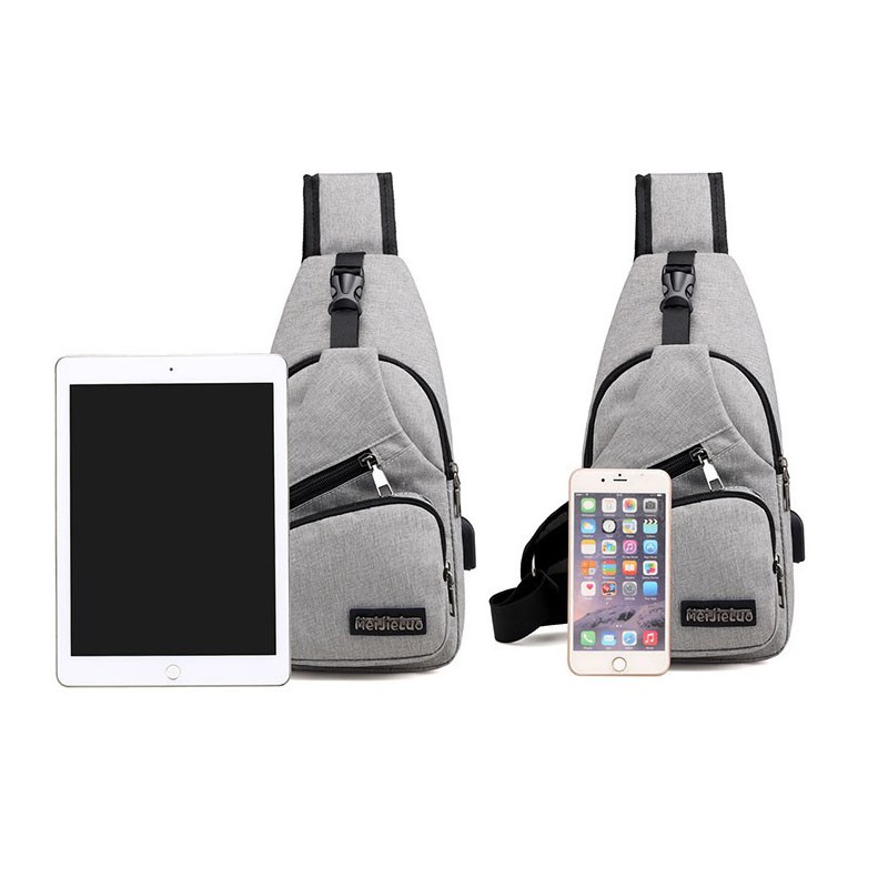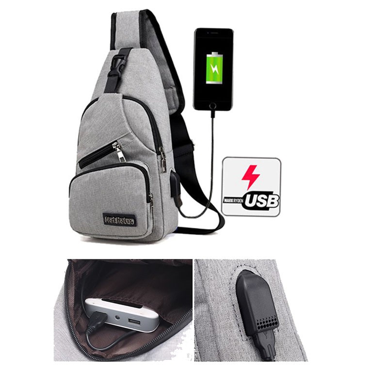 กระเป๋าสะพายไหล่ผู้ชาย Messenger ถุงผ้าใบกระเป๋าหน้าอกชาร์จ USB