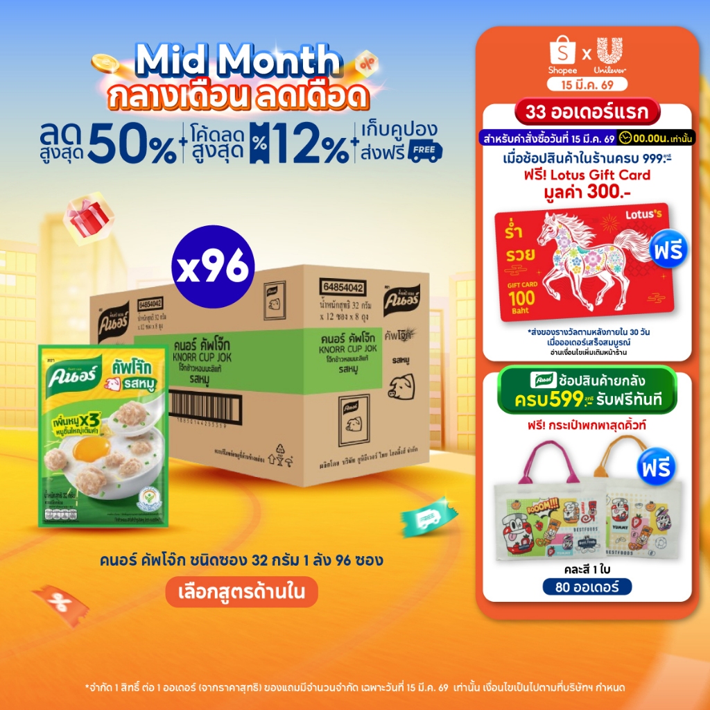 [ยกลัง] Knorr cup sachet 32 g. x96 คนอร์ คัพโจ๊ก ชนิดซอง 32 กรัม 1 ลัง 96 ซอง