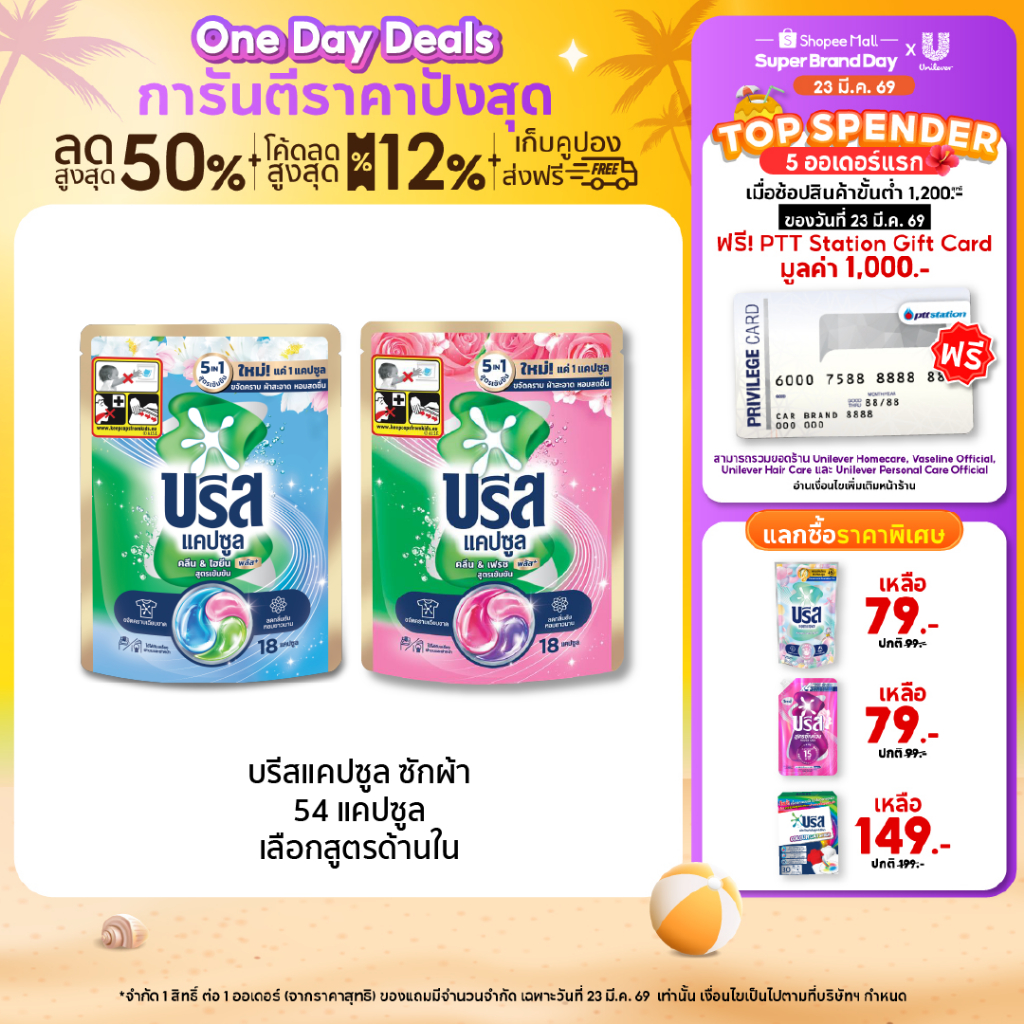 บรีส แคปซูล ซักผ้าขจัดคราบ หอมสดชื่น 189 กรัม x3 Breeze Capsule Detergent Tub 189 g x3