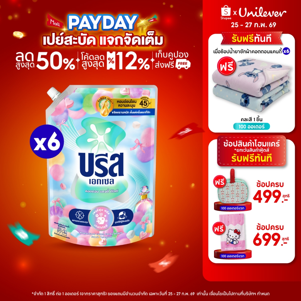 [ยกลัง] บรีสเอกเซลซิกเนเจอร์ น้ำยาซักผ้า 1100-1350 มล. x6 Breeze Excel Signature Liquid Breeze 1100-1350 ml.x6